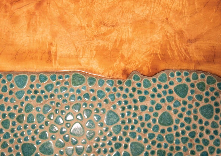 サウナ室内の床は、屈斜路湖の水の色をイメージしたエメラルドグリーンのタイルと、クスノキの⼀枚板を敷き詰め、屈斜路湖周辺の土地を表現しております。クスノキには⾎⾏促進作用や鎮痛作⽤、消炎作⽤などの効果があります。