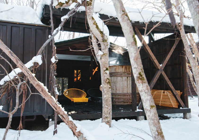 また、7⽉から8⽉にかけての夏季平均気温は20℃に満たない日が多く、夏は⾮常に過ごしやすい環境です。夏は外気浴と共に森林浴、冬は雪景⾊を⾒ながら極寒の外気浴で”ととのう”環境です。四季ごとに変化する景⾊を楽しみながら、外気浴ができることも魅⼒の⼀つです。