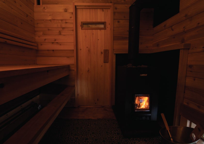 サウナストーブには、サウナストーブ世界No.1シェアのフィンランドメーカー「HARVIA」の薪式のサウナストーブを使⽤。薪がパチパチと燃える音、炎や木の⾹りがする室内で、温泉を使⽤したセルフロウリュウだけでなく、薪をくべた火とサウナの熱さとの一体感をお楽しみいただけます。