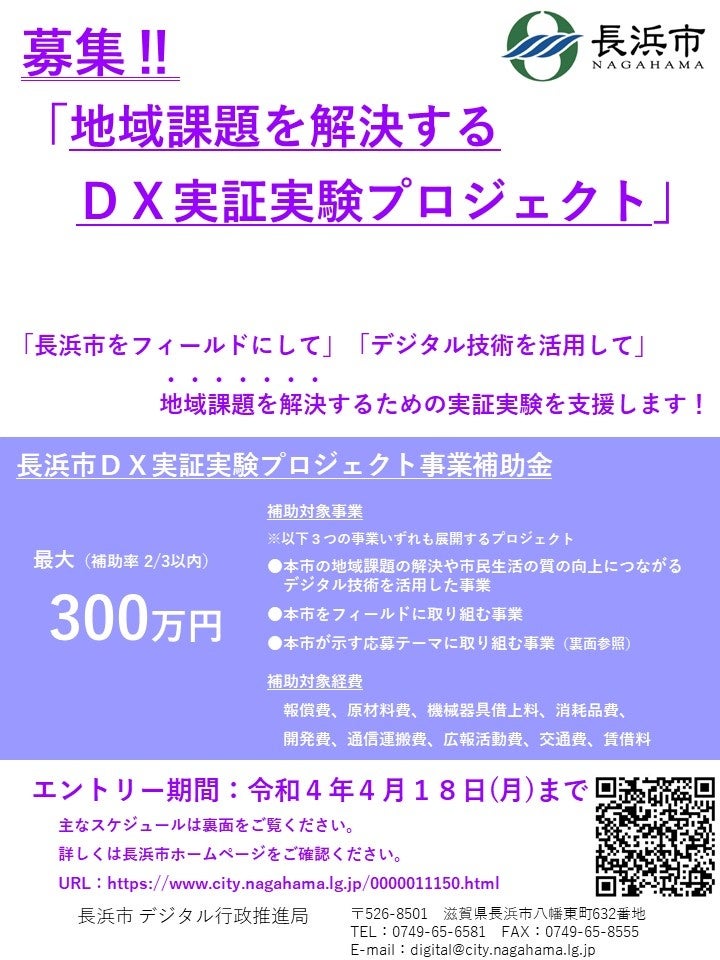 「長浜市DX実証実験プロジェクト事業」プロジェクト実施者公募のお知らせ