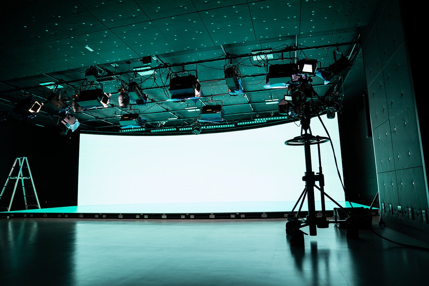 渋谷にありますn00b.st(スタジオヌーブ)は、床面と壁面にワイド8mの大型LEDを導入した「In-Camera VFXスタジオ」です。モバイル中継対応可能なDejeroを導入しており、n00b.stから日本中のどこでも中継可能な撮影スタジオです。また、In-Camera VFXにDisguiseシステムを導入しているため、カメラの動きと壁面のLEDを連動させ、先進的かつクリエイティブな演出も可能なスタジオとなっています。
