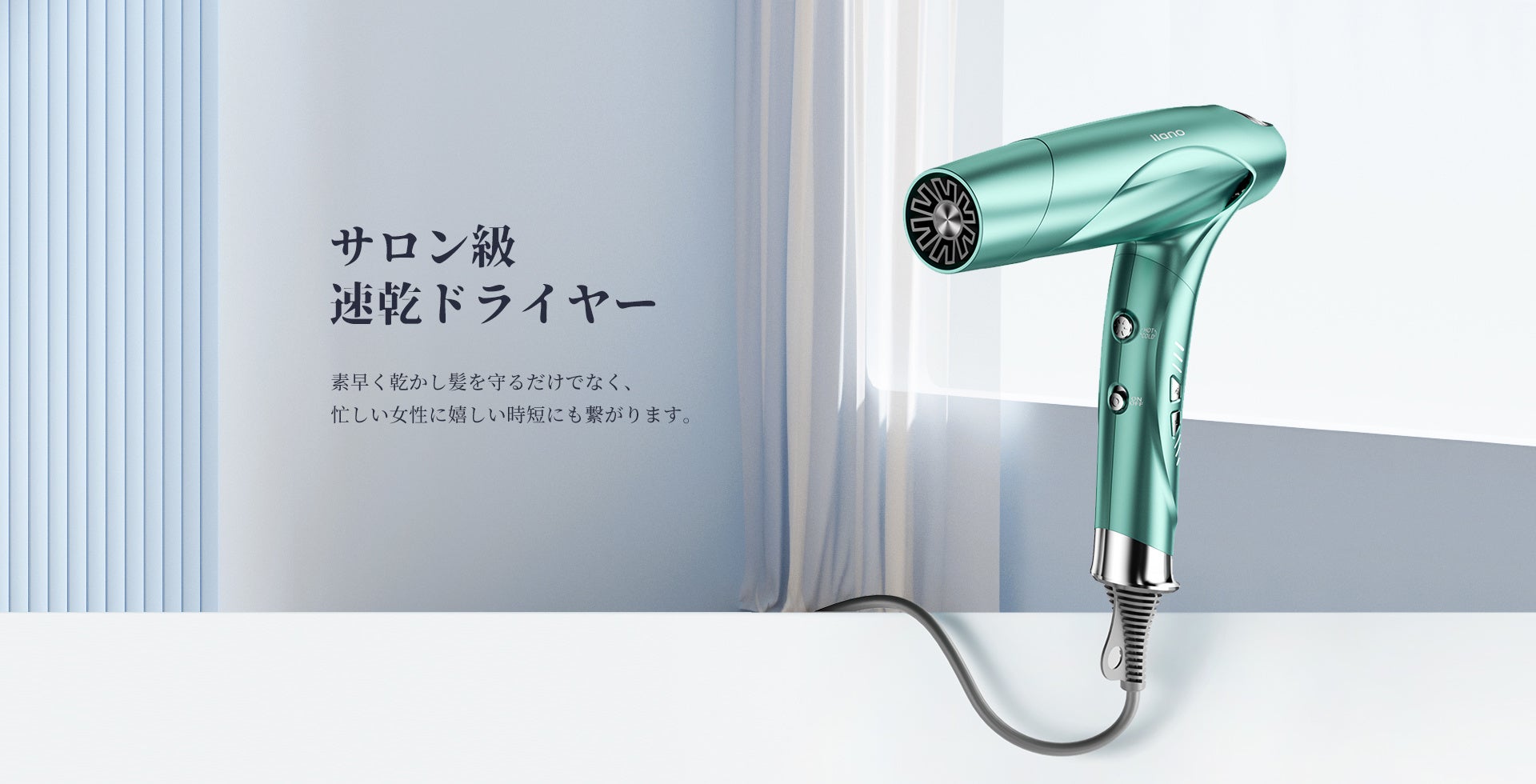llanoヘアドライヤーはワンボタンで美しい髪を出して、進化した温冷リズムモードを搭載しております。