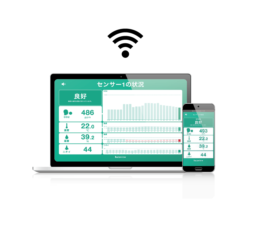 - いつでも、どこでも室内環境を遠隔監視 ~スマートフォン・PC等で遠隔監視(一括監視も可能)~