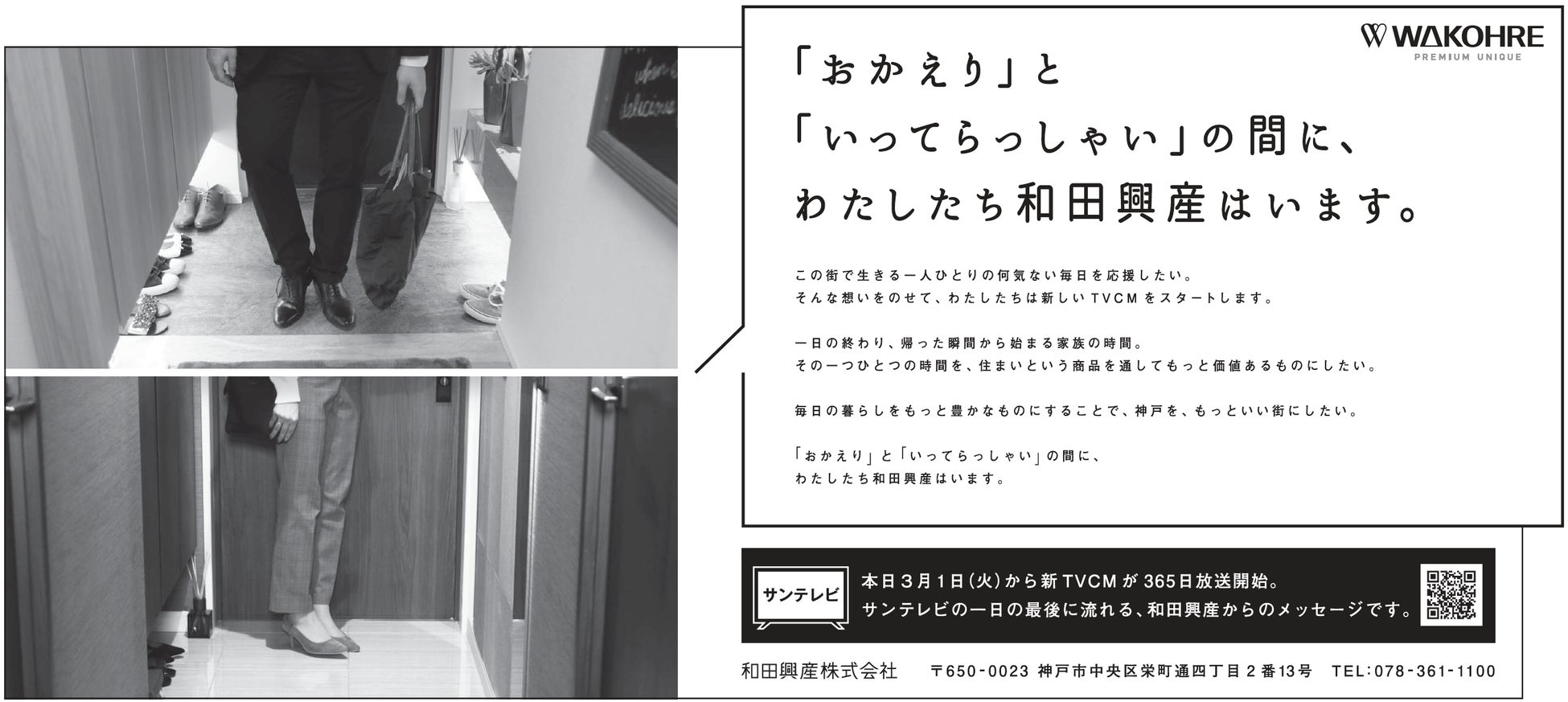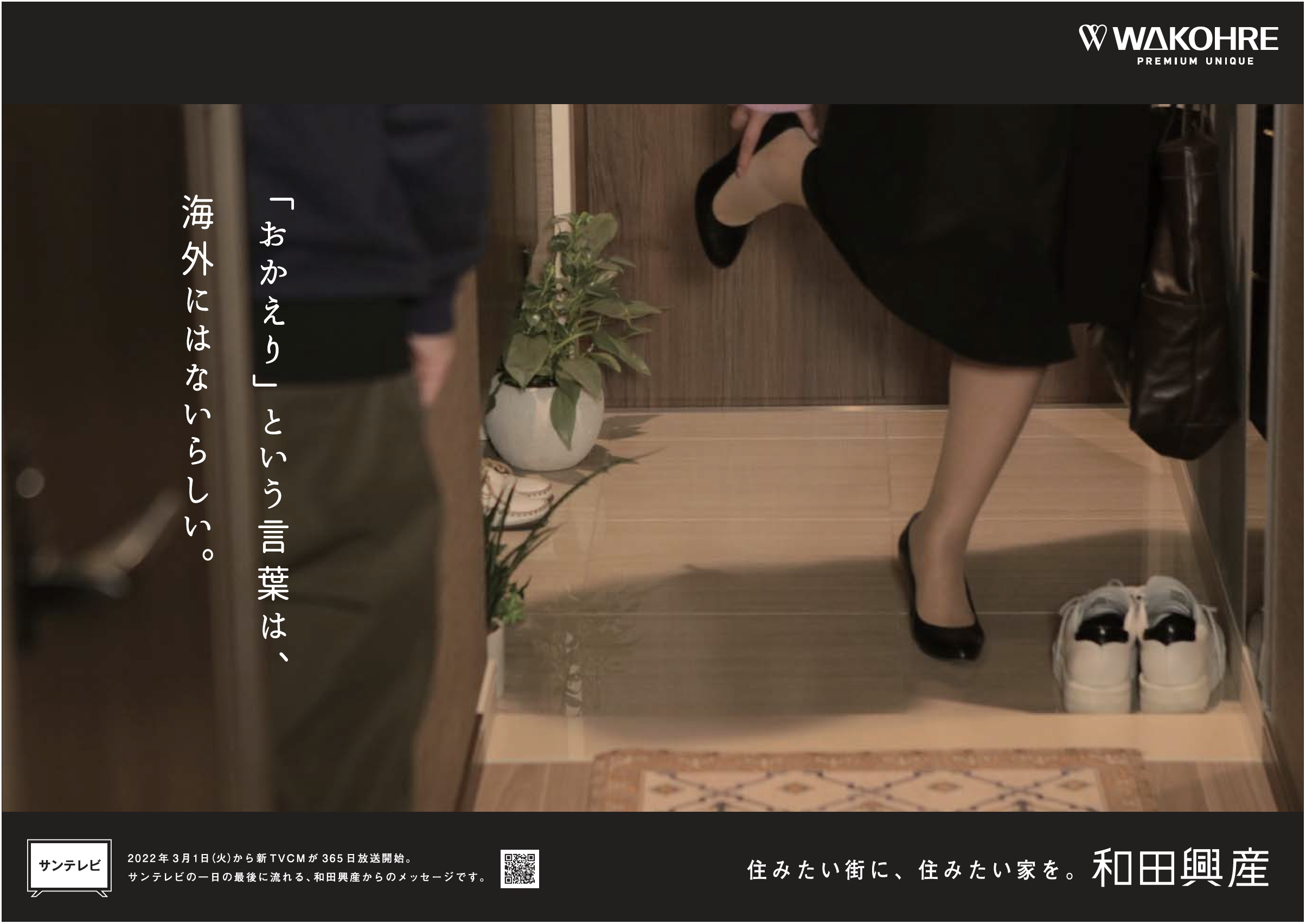 本CMは、神戸の企業である和田興産株式会社が神戸のテレビ局、広告会社、生活者、この取り組みに賛同いただいたアーティストが力を合わせて制作した、文字通り「神戸の企業の神戸の人による神戸のためのTVCM」です。家族の暮らしを玄関先の“おかえり”のシーンで象徴的に描き、神戸の何気ない毎日を応援したい想いを込めています。