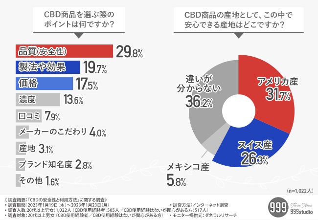 【CBD商品の安全性と利用方法について調査】選ぶ時のポイント1位は「品質」!CBDの利用目的や使う上での心配ごととは?