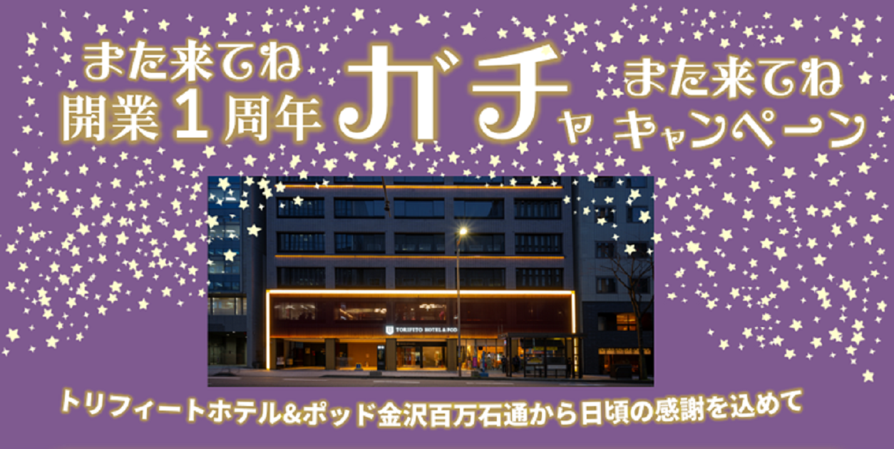 【トリフィートホテル&ポッド金沢百万石通】開業1周年 感謝の気持ちを伝えるガチャ企画はじまる。