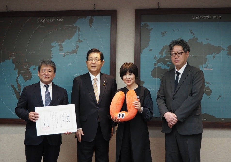 企業部門で大賞を受賞されたエプソン販売株式会社さまとともに、北橋北九州市長より賞状を授与されました。