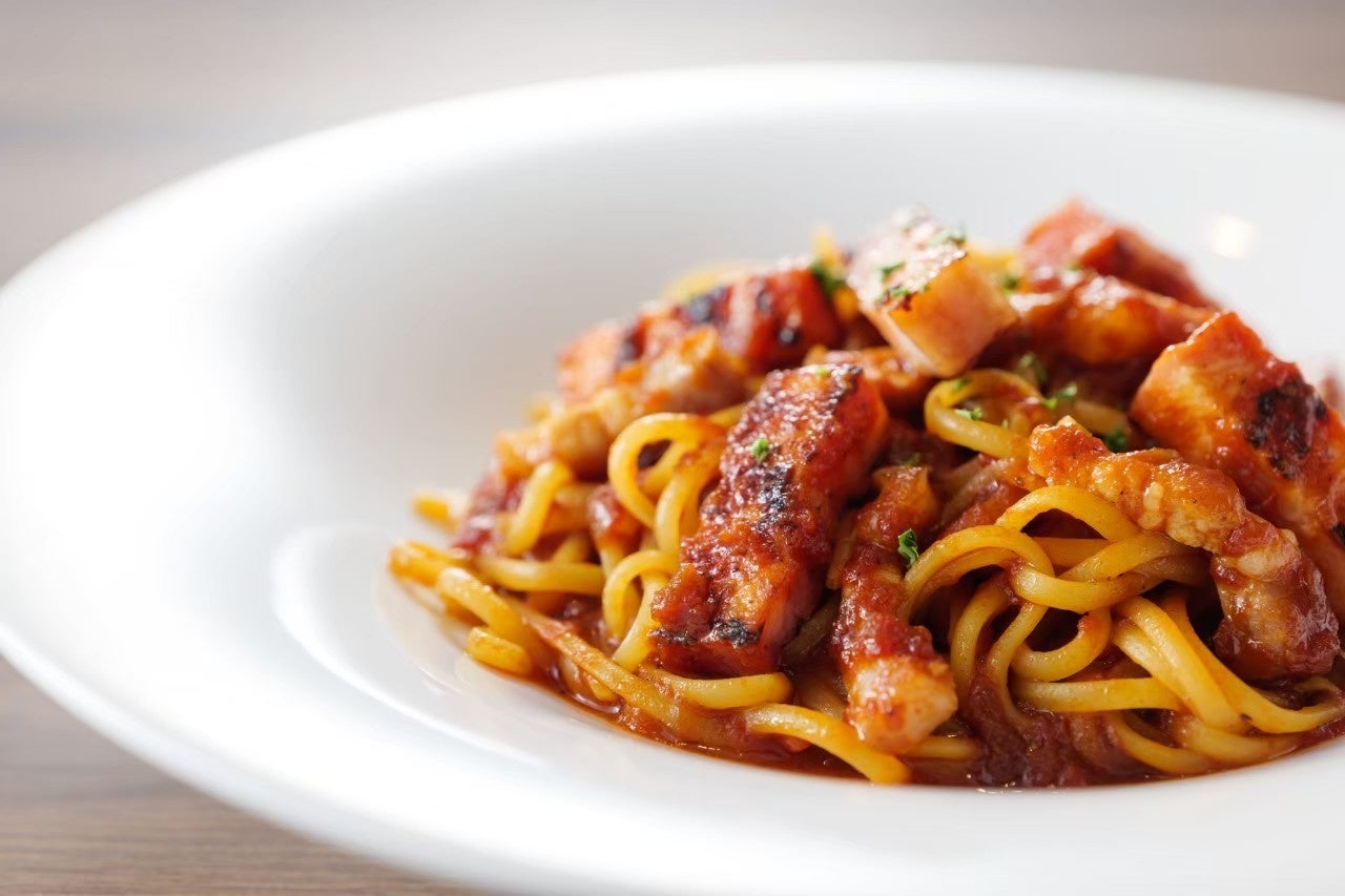 8年間の長きに渡り試行錯誤した結果、独自の粉の配合・真空製麺機使用によって、他店では味わえない、最高品質、唯一無二の弾力・コシのあるモチモチ食感と風味のパスタを作り出すことに成功しました。