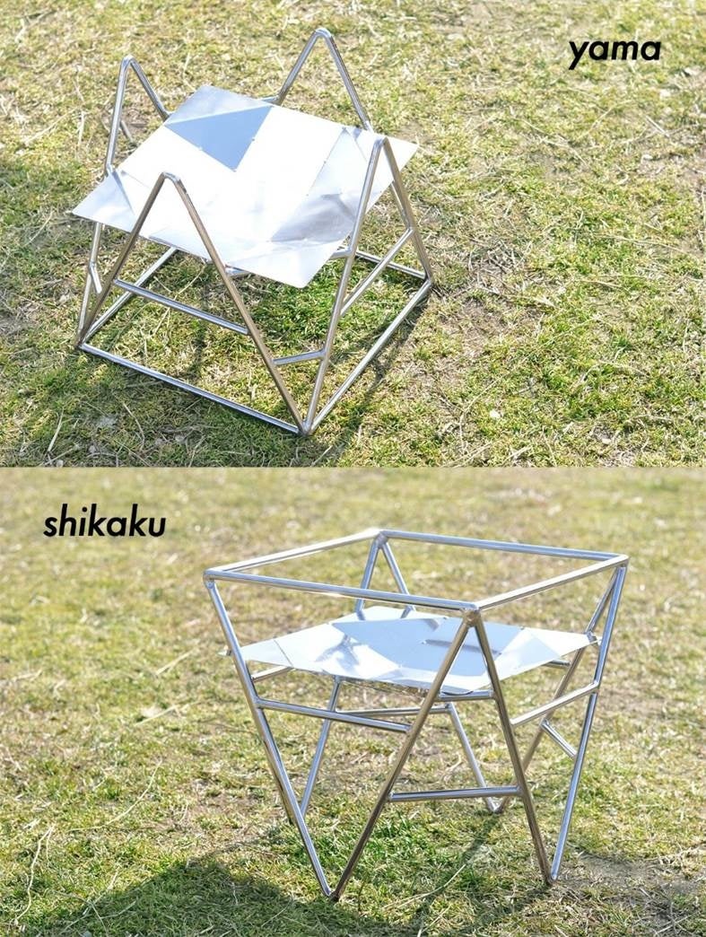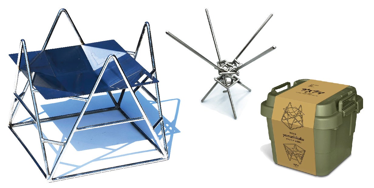愛知の町工場が作ったアウトドアブランド「サスラヲ」よりALLステンレスの頑丈な焚き火台「yamashikaku」と簡単に薪が立てられる「makitate」を発売。