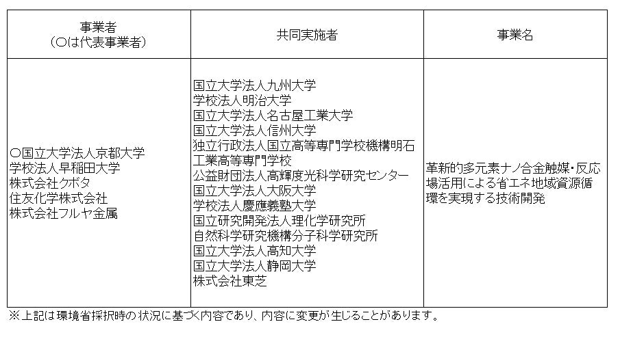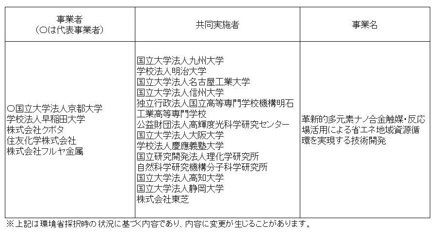 環境省令和4年度地域資源循環を通じた脱炭素化に向けた革新的触媒技術の開発・実証事業への参画について