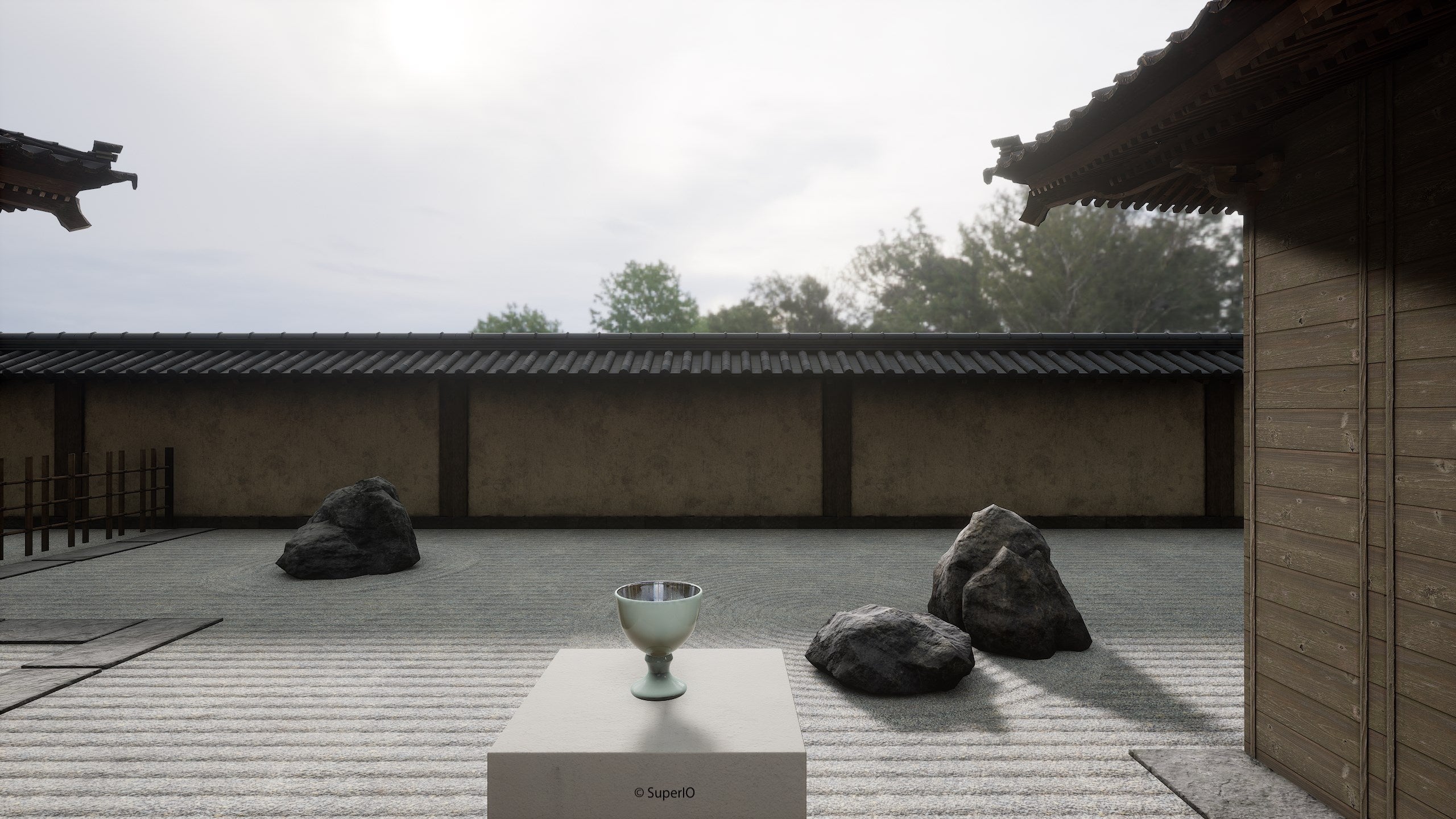 本展示は日本の伝統工芸品や美術品を2Dと3Dで展示した革新的な試みで、「XR日本間」by SuperIO は今まで困難だった美術品や伝統工芸品のディテールを先端技術であるリアルタイムCGにより表現を可能にしたXRの仮想空間です。