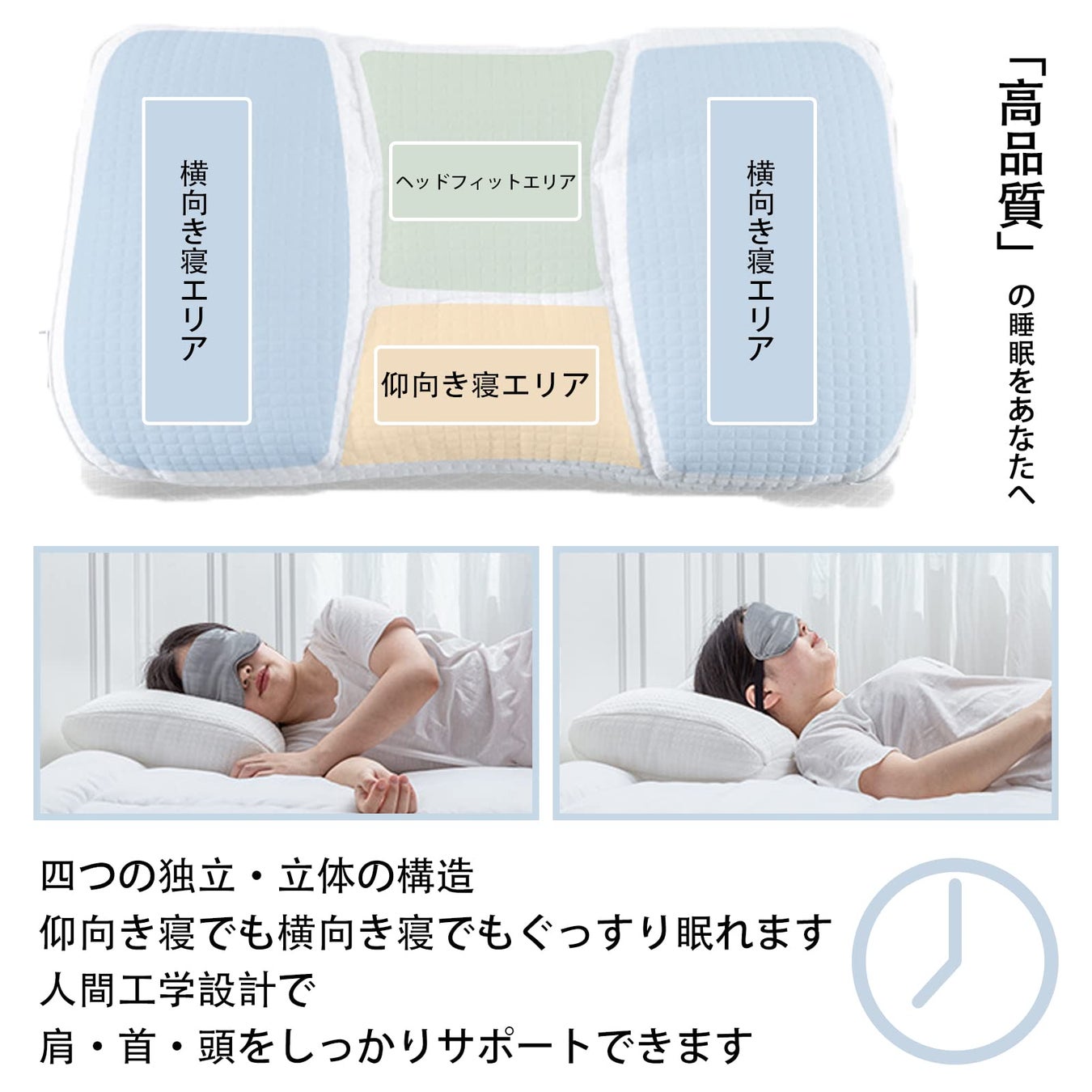 こちらは人間工学により枕を4部分に分けます。異なる寝姿とニーズが対応可能、こちらの枕は頚椎に十分のサポートを提供します。頚椎部分への圧力を緩和し、よりリラックスさせます。仰向きと横向きで寝る方に最適です。