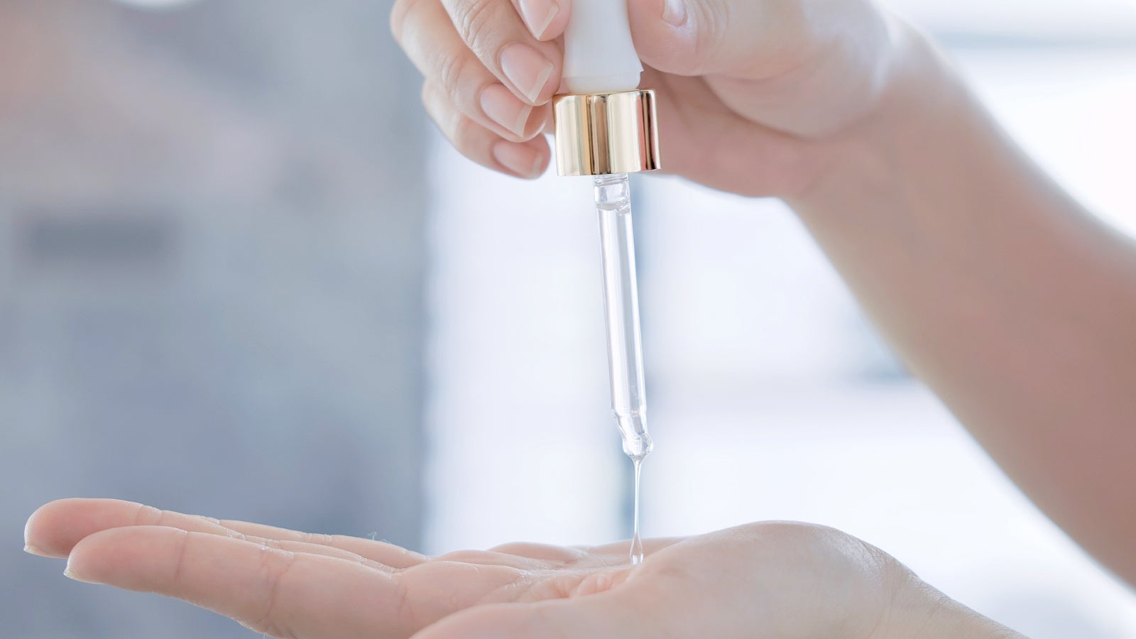 2.オイルを数滴(1滴から始めてください)手に取ります。手のひらでしっかりとオイルを温めるように伸ばします。