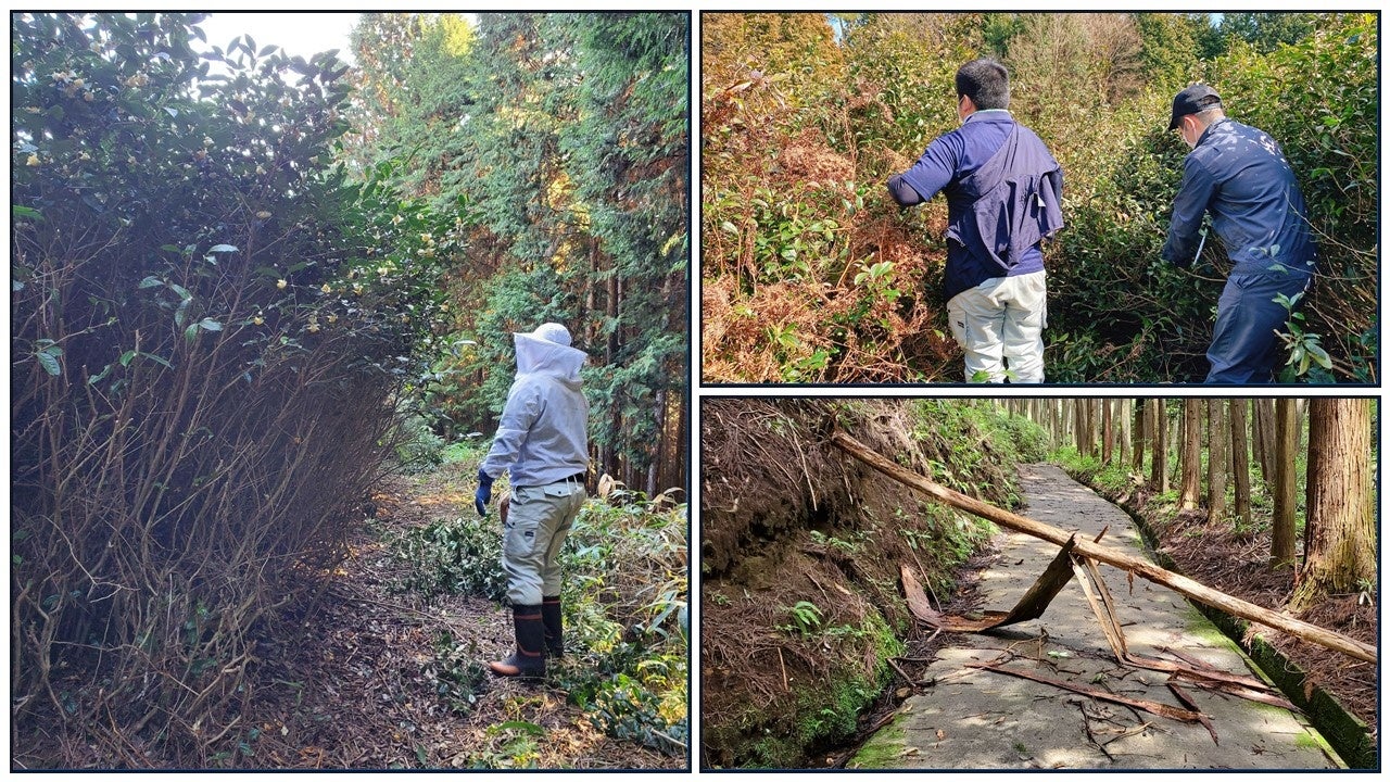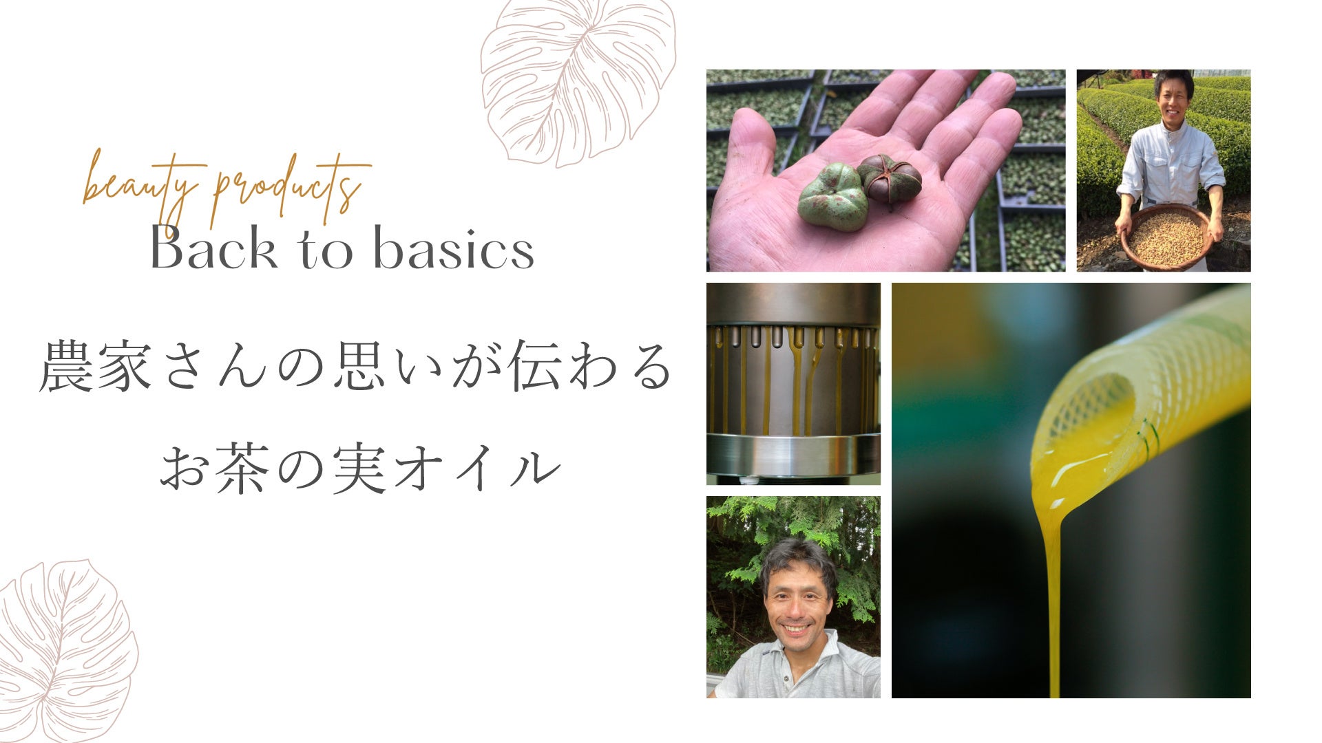 茶畑を廃業する茶農家の増加に伴い、放置されているお茶畑が増加しています。放置されたお茶畑を整備。道なき場所でのお茶畑の整備はとても大変な作業です。お茶の木は通常、実をつけないように栽培されるため、お茶の実はとても貴重な素材。ひとつひとつ手作業でお茶の実が収穫されます。このお茶の実が丁寧に搾油され、お茶の実オイルとなります。