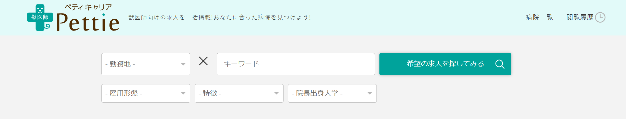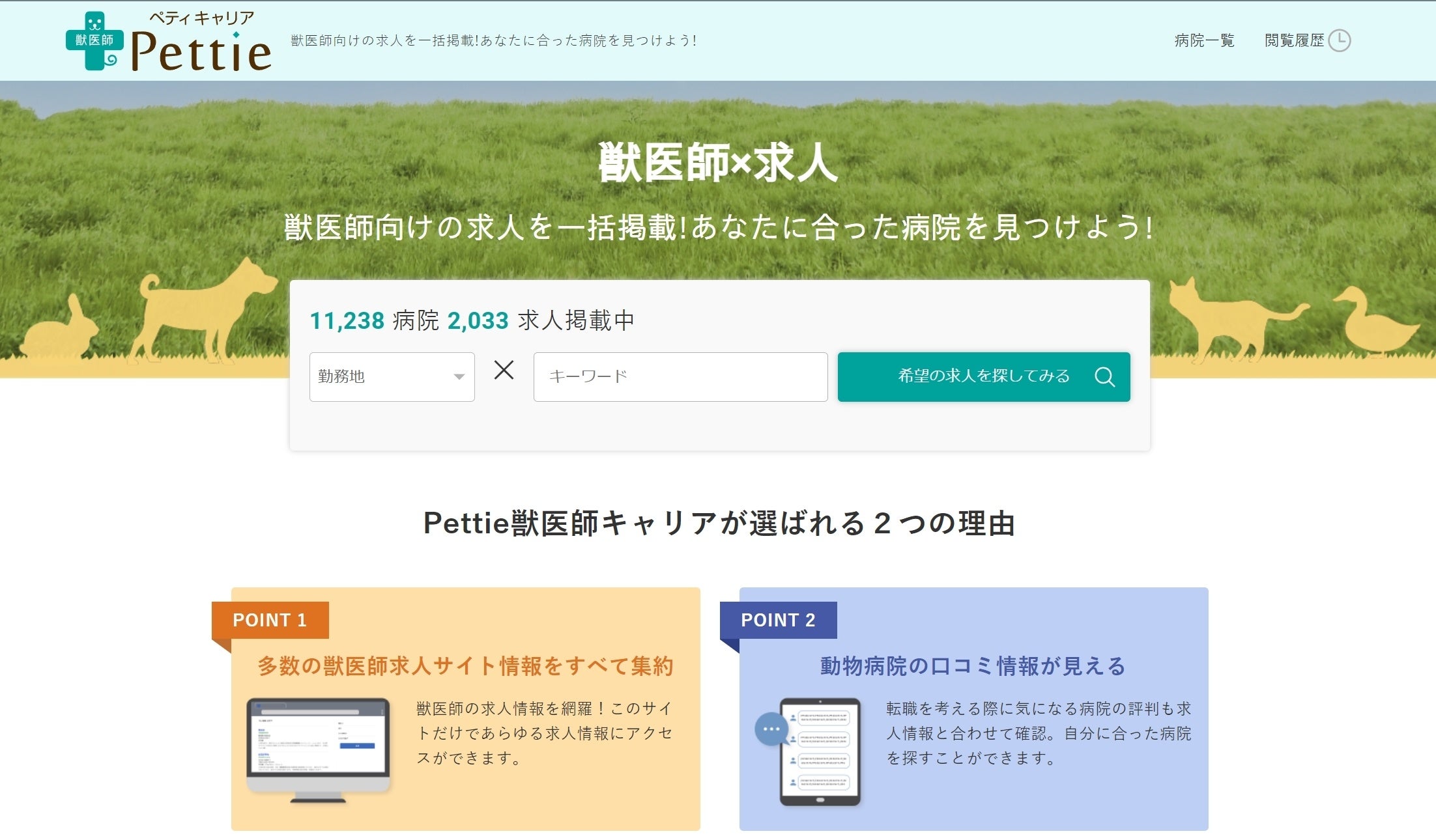 - Web上に掲載されている多数の獣医師の求人情報をPettieに集約