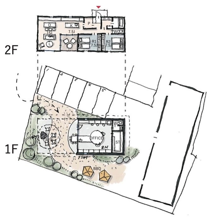 宿泊(2階)、インテリアサロン(1階)ショップ(別棟)*詳細は次項ご参照