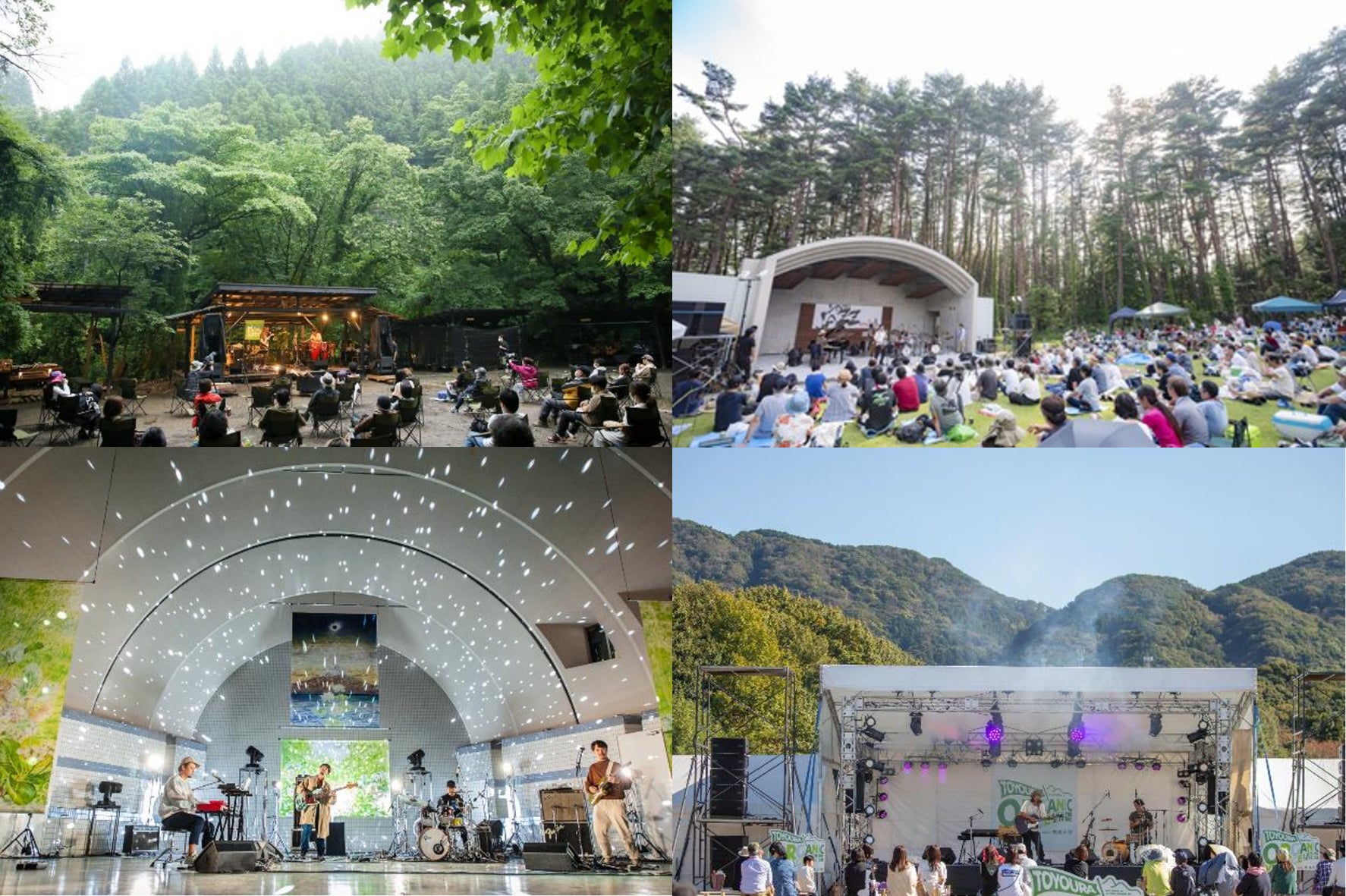例えば上図の「多摩あきがわLive Forest」(東京都あきる野市/画像左上)、「アルソア女神の森」(山梨県北杜市/画像右上)、「代々木公園イベント広場野外ステージ」(東京都渋谷区/画像左下)、「リフレッシュパーク豊浦」(山口県下関市/画像右下)など計4箇所については、ソラリズムの<フェス共創サービス>を通じてアレンジが可能な野外ステージおよび会場*2として、野外ライブを開催したい個人や法人・団体向けにコーディネートを行います(今後も対象会場は追加となる見込みです)。