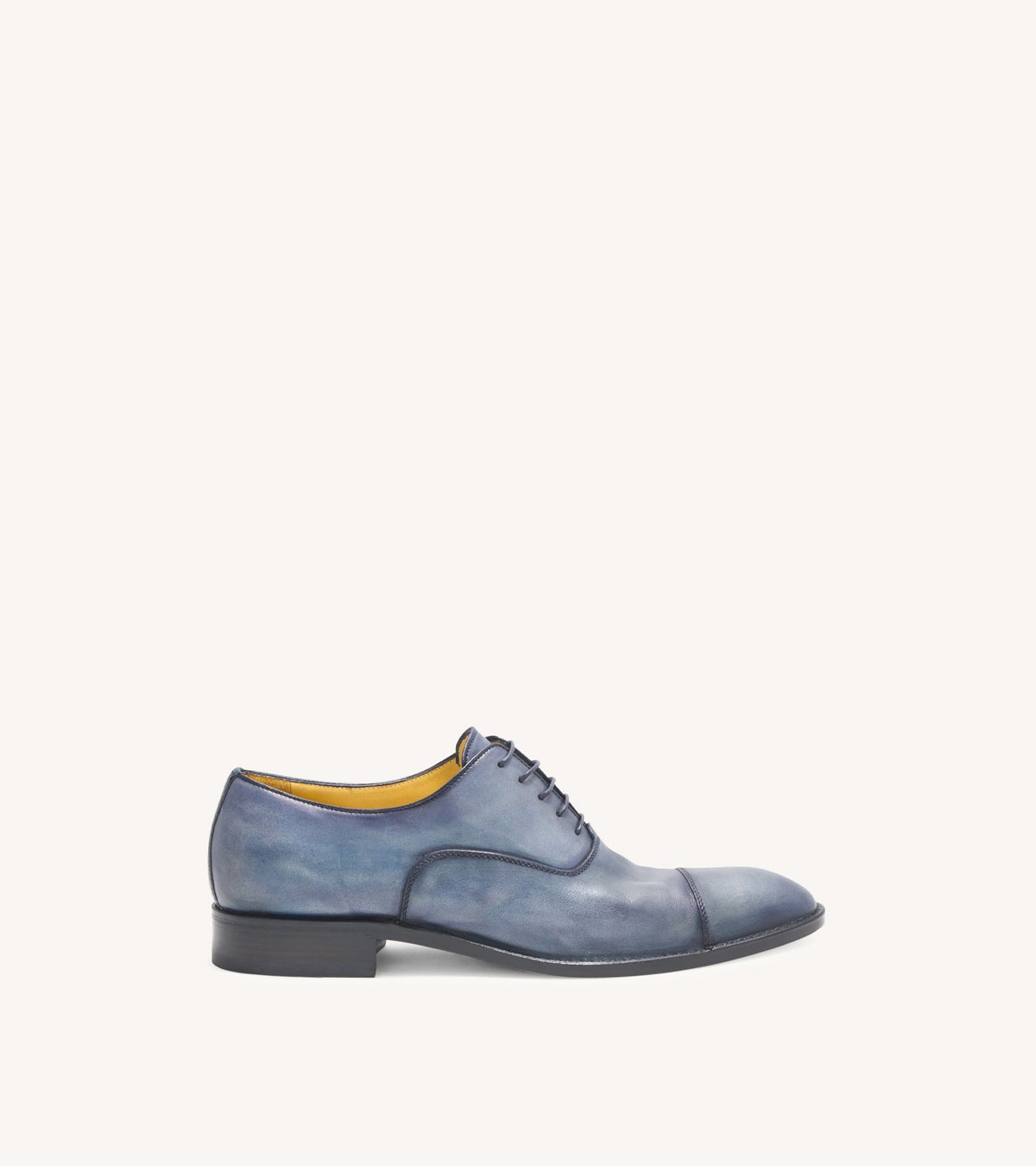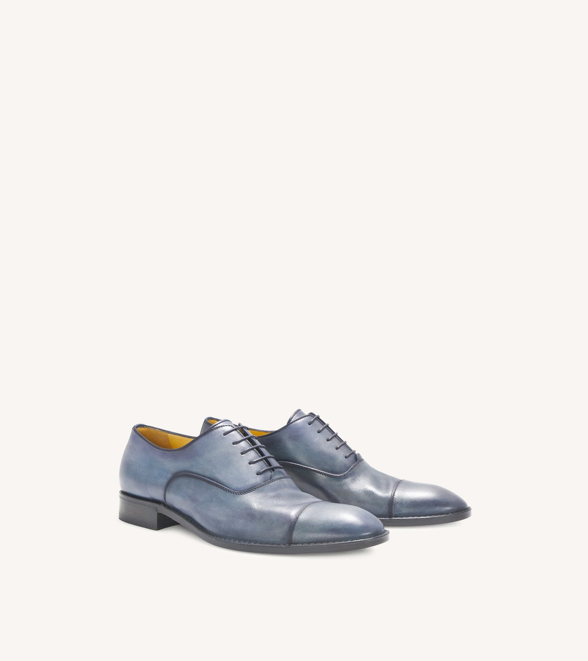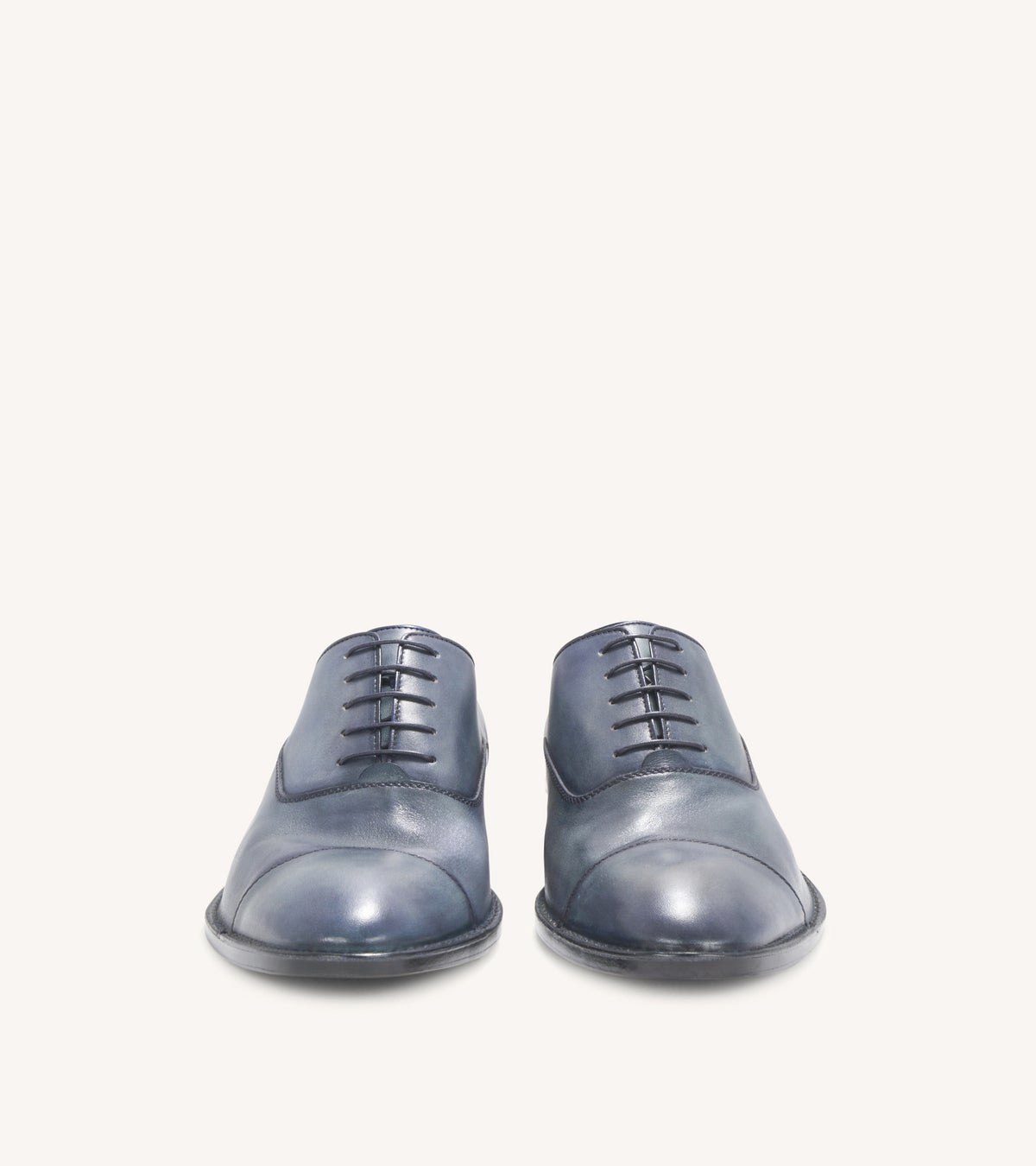 洗練されたデザインと軽やかな履き⼼地を両⽴するシューズ「Vallebona Oxford(ヴァッレポーナ・オックスフォード)」は、「イデアル」製法(ステッチダウンの⼀種)で作られており、柔軟性と耐久性に優れています。洗練されたデュー(霧のような淡いグレー)⾊のアンティーク加⼯を施して、⼿作業で磨かれたスムースカーフスキン「ソフト・デラヴェ・カーフ」で仕⽴てます。ランブルスコカラーのレザーアウトソールが、控えめなエレガンスを演出します。
