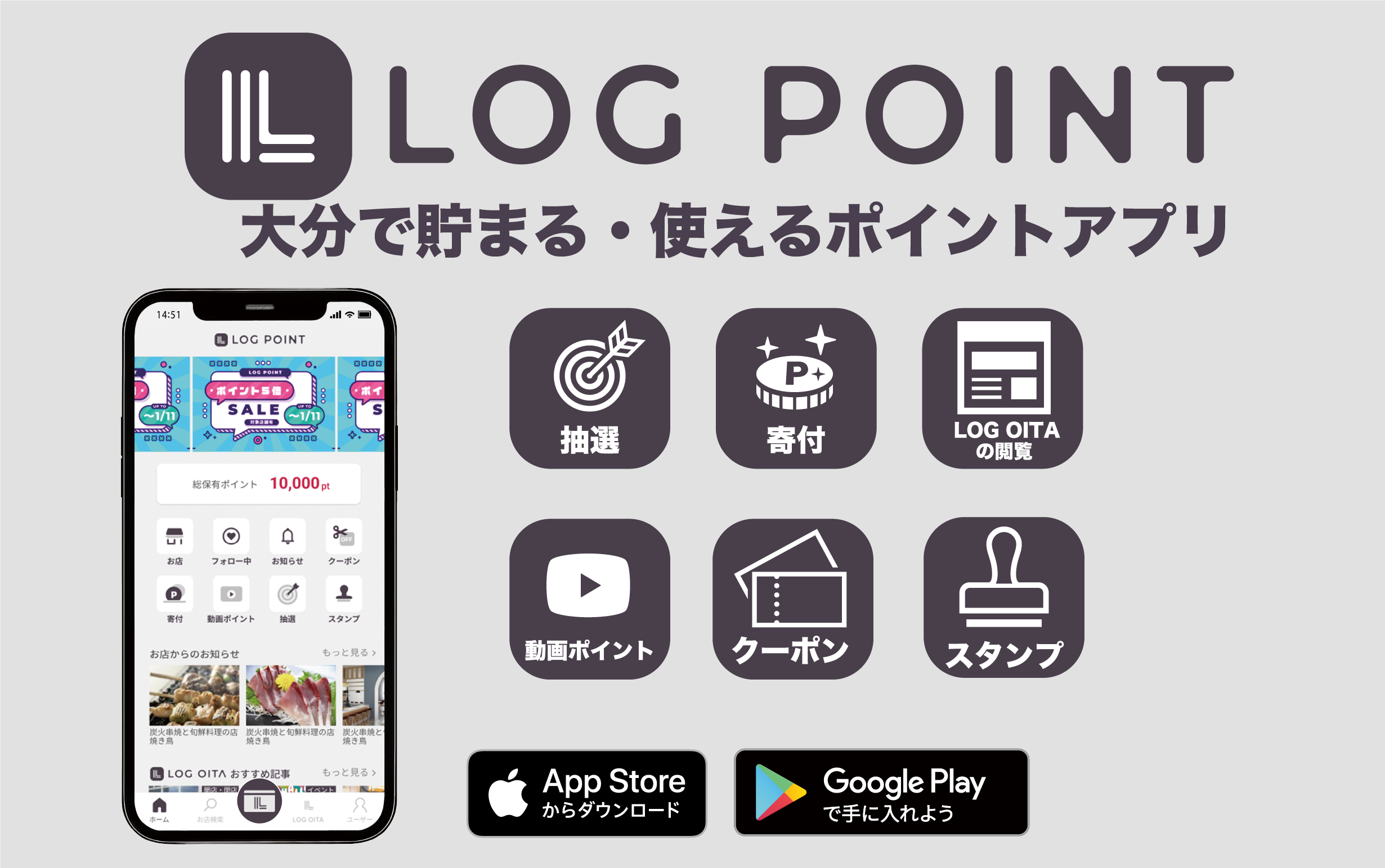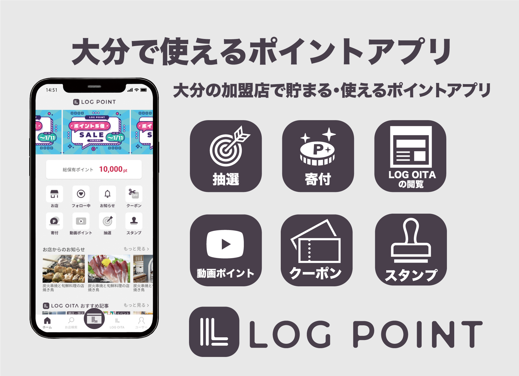 飲食店の情報や観光情報を日々発信しておりますが、新型コロナウイルス感染症で外出を控え、飲食、観光業界は大きな損失をもたらした現状を受け、再び大分の活性化を図る目的として地域特化型のポイントアプリ『LOG POINT』を2022年5月26日に正式リリースする運びとなりました。