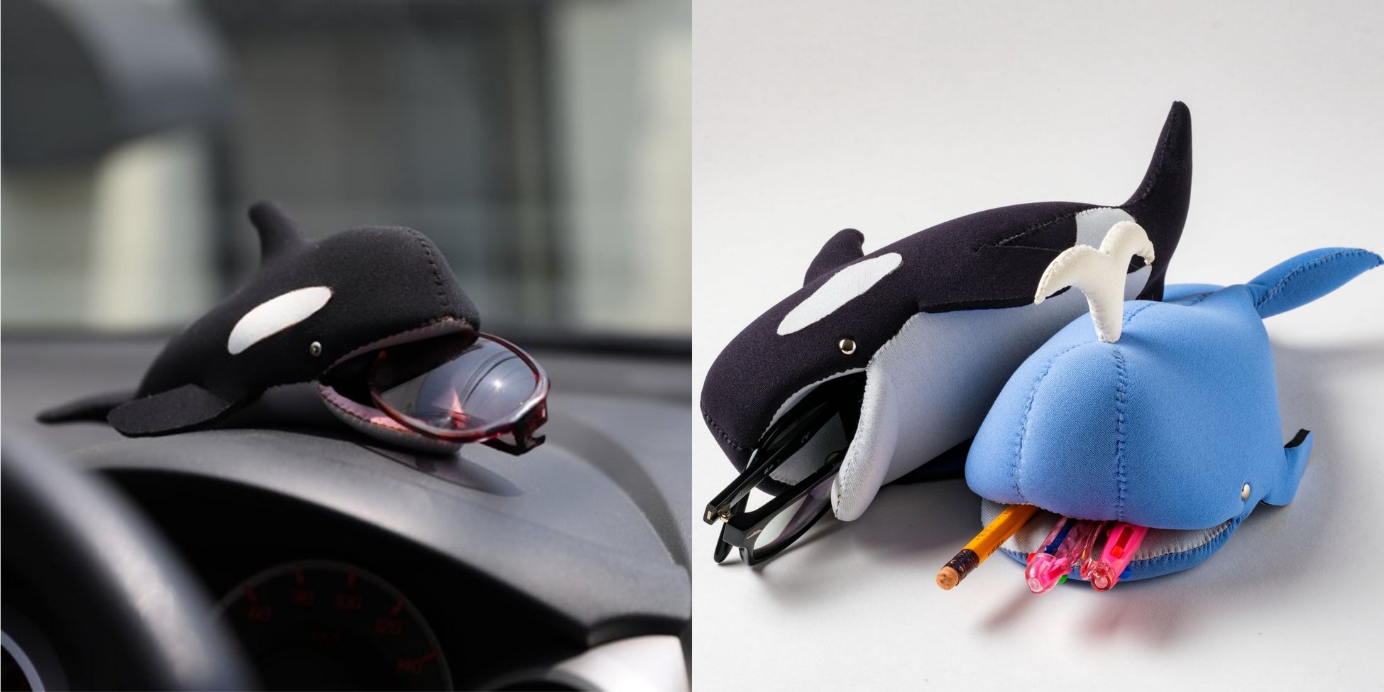 ウエットスーツを作る際に出てしまう端材をもとに作られた海の生き物をモチーフにした雑貨です。シャチとクジラのメガネケースは口部分がマグネットで開閉するようになっており、中にものを入れた後ぱくっと口を閉じる姿がとてもキュート。車のダッシュボードなど、インテリア感覚で楽しめます。夏が恋しいマリンスポーツが好きなあの人へ、海を身近に感じられるアイテムです。