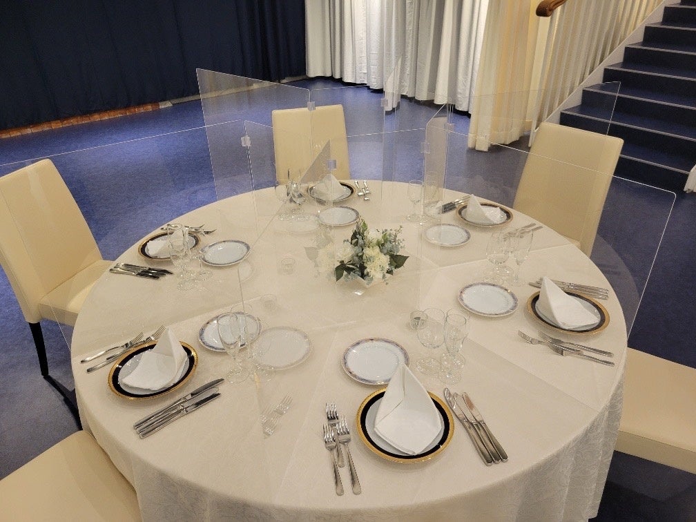 ・テーブルにパーテーション設置(同じ家族や友人間ではパーテーションを除くことも可能)