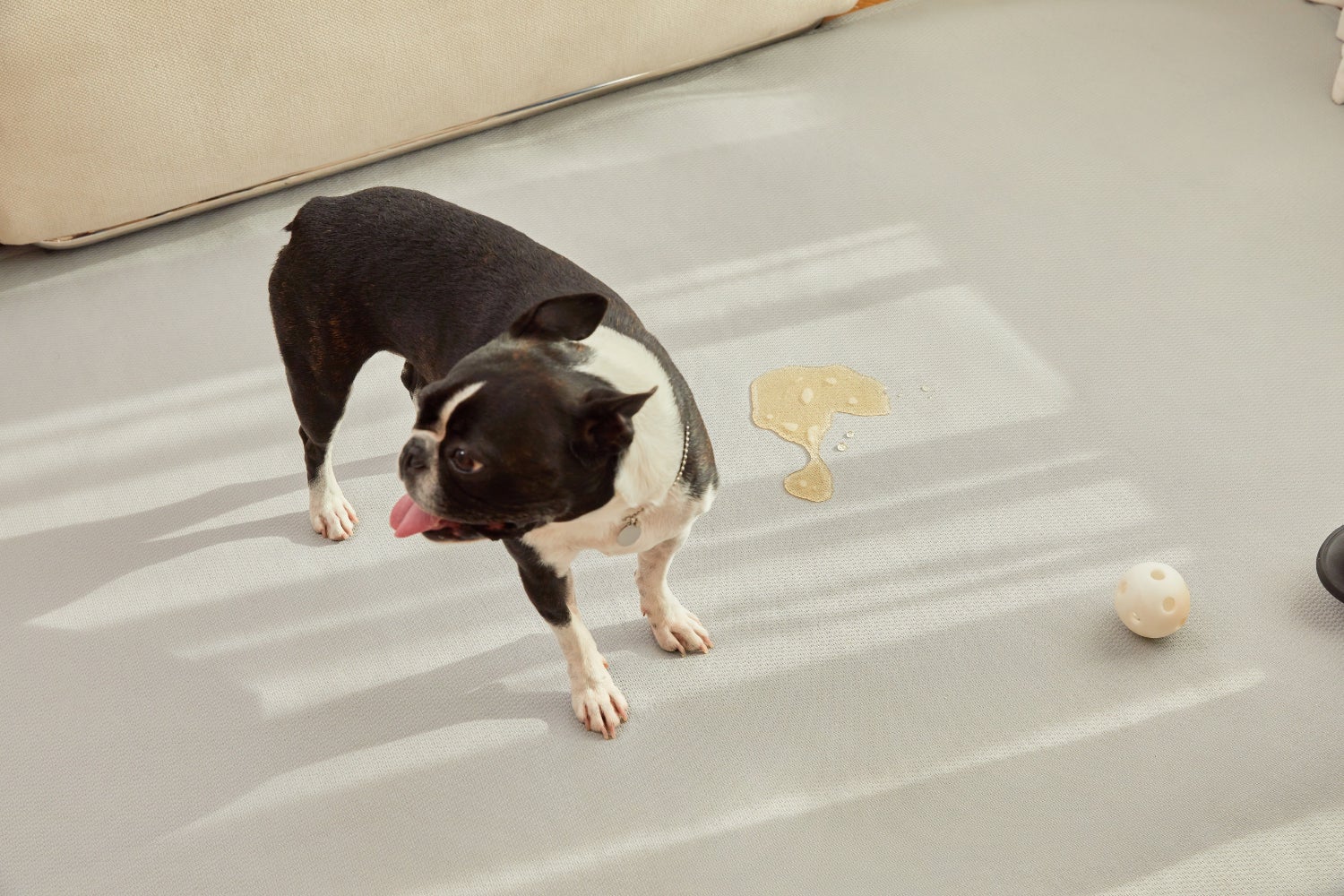 けがをする前に、いつも遊ぶリビング・ベッド前などジャンプをする家具周辺・廊下などペットが行く場所の滑りにくい環境づくりが大切です。