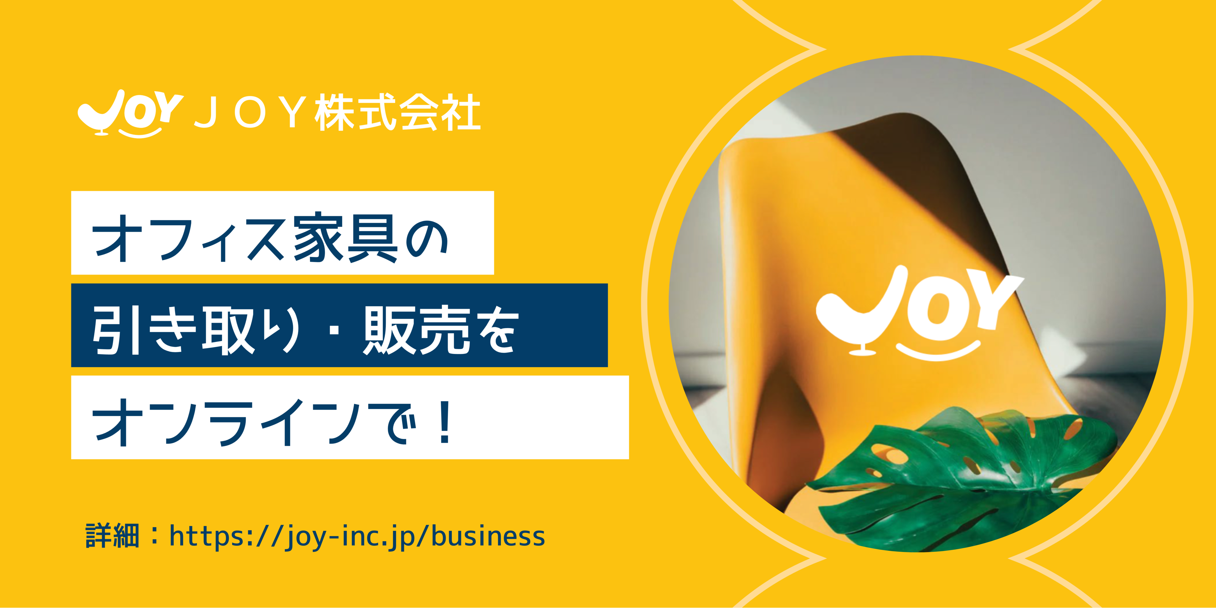 JOY株式会社は、テクノロジーの活用を得意とする、中古オフィス家具の取り扱い会社です。