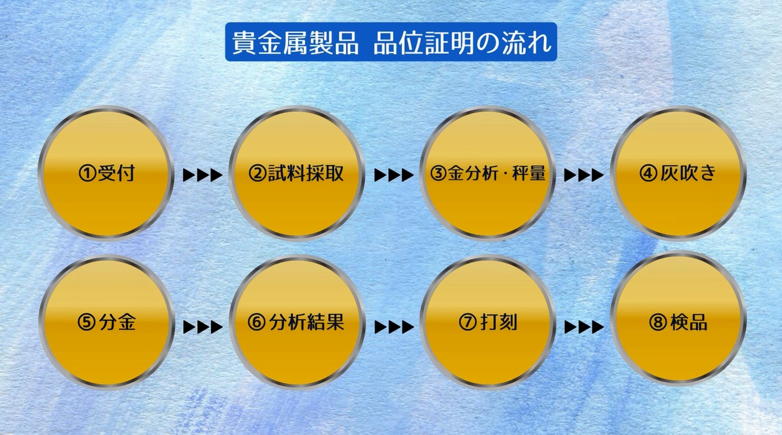 工場見学ではお見せしていない貴金属製品品位証明業務を映像とパネルで紹介