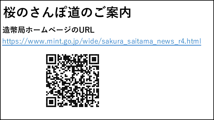造幣局さいたま支局では、構内の桜並木「桜のさんぽ道」を一般開放し、日頃から造幣局の事業にご理解をいただいている皆様に当局の桜に親しんでいただくとともに、造幣さいたま博物館及び工場見学をお楽しみいただけるイベントを開催します。