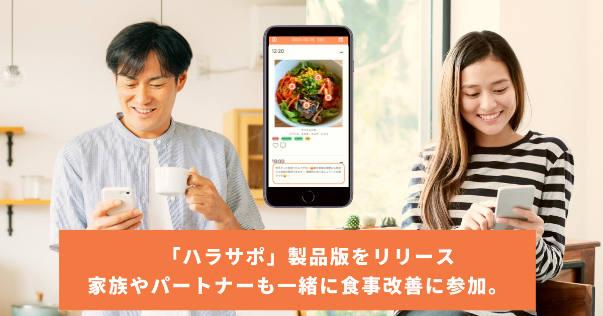 株式会社ハラサポ(福岡市、代表取締役 原美咲、以下 ハラサポ)は、2022年5月31日に管理栄養士によるオンライン食事指導「ハラサポ」の製品版をリリースしたことを発表します。製品版では、自宅で食事を食べる回数が増加したというコロナ禍の食生活の変化に対応する為、家族やパートナーに食事改善の情報を共有することが可能です。