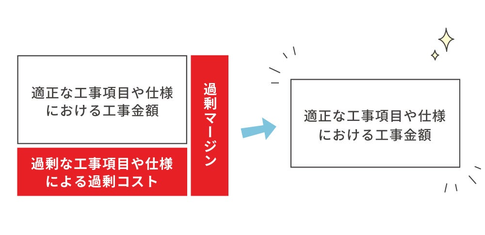 お客様自身が複数の工事会社から見積や工事内容の提案をうけることで、競争原理を活用した低コスト化やご要望に応じた工事が実現できます。
