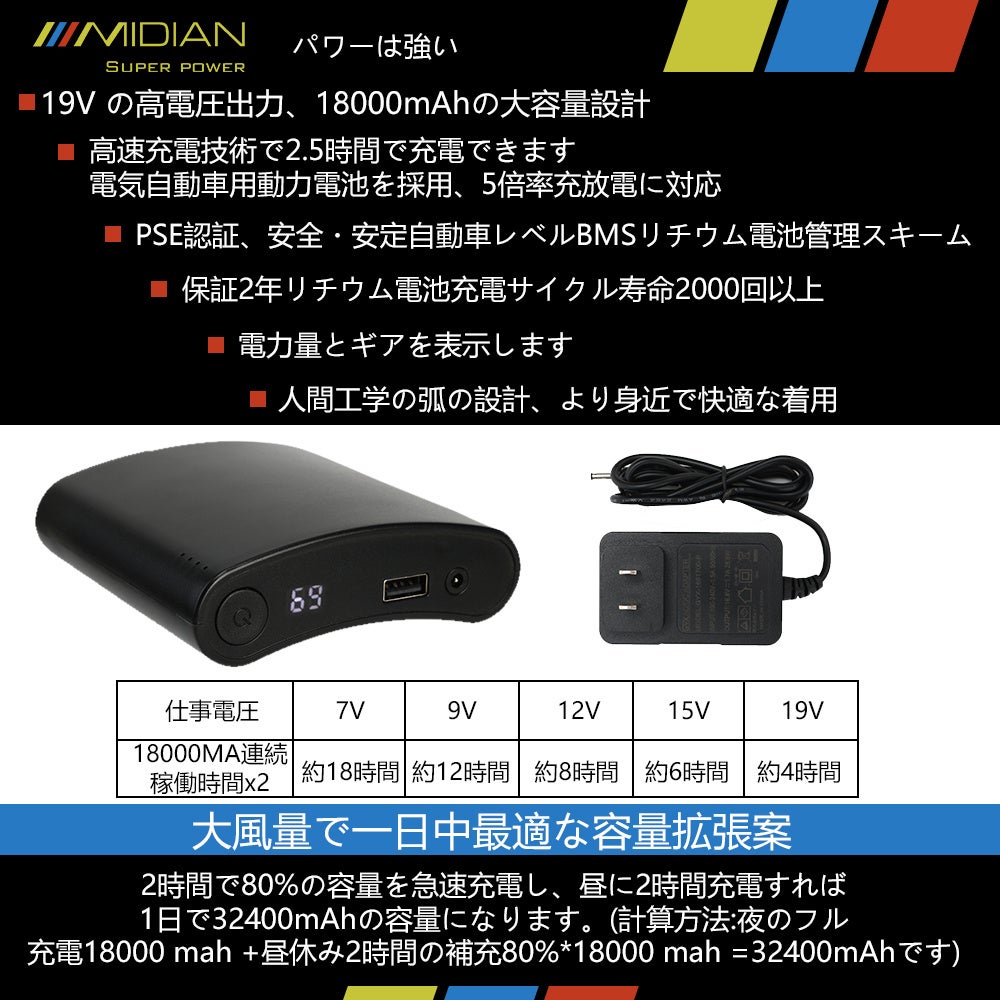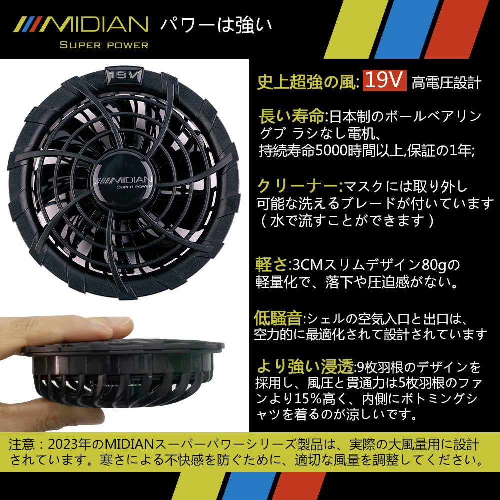 MIDIAN2023グレードアップ19V急速充電バッテリーファンセット