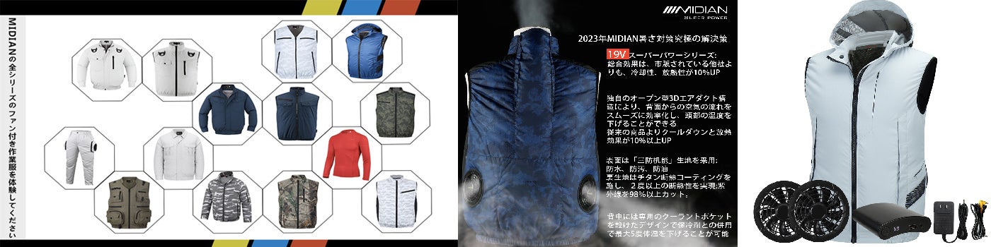 の高性能や急速充電対応など、作業に必要な機能を充実させ、快適な作業環境を提供します。MIDIAN扇風服は、作業効率や生産性の向上に大きく貢献することが期待されています。
