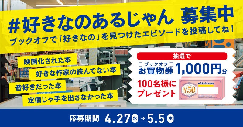 100名様にブックオフで使える「お買い物券1,000円分」をプレゼント