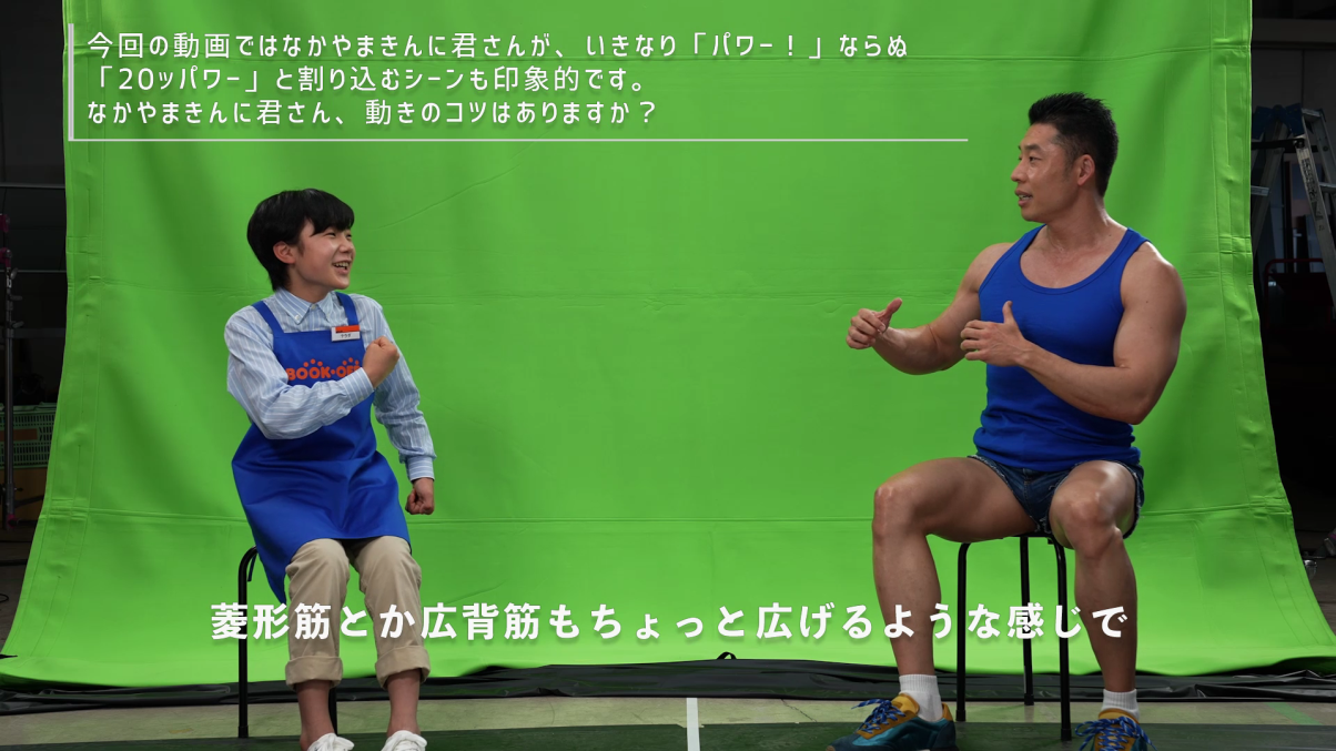 ―今回の動画ではなかやまきんに君さんが、いきなり「パワー!」ならぬ「20ッパワー」と割り込むシーンも印象的です。なかやまきんに君さん、動きのコツはありますか?