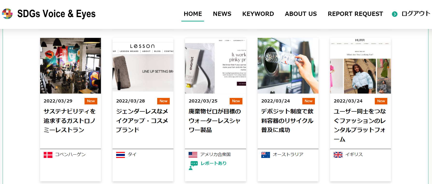 世界中の生活者に共感・支持を得ているSDGs関連商品・サービスのビジネスレポートを掲載する、企業向けサブスク型ビジネスレポート・プラットフォームです。先行事例の紹介にとどまらず、各国の生活者に実際に支持されているモノ、コトの「Why」「What」「How」を発信し、具体的なビジネスアクションに連動できるレポートが、ほぼ毎日公開されます。
