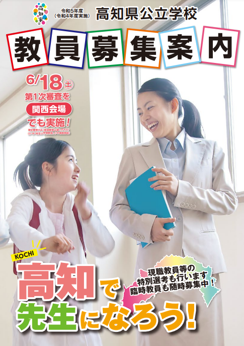 令和5年度(令和4年度実施)高知県公立学校教員募集案内はこちら