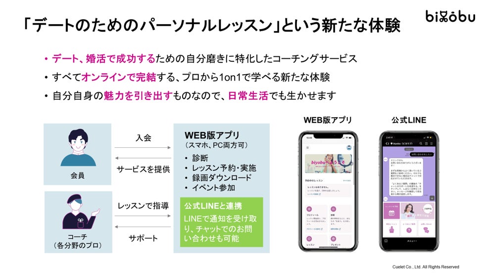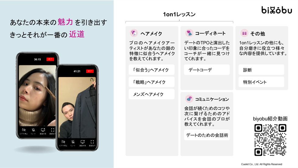 東京、2024年2月2日 – ヘアメイク学習のプラットフォームとして設立されたbiyobu(ビヨウブ)は、2024年2月5日にリブランディング及び新たなサービスをリリースすることを発表しました。これは、結婚相談所の会員に特化した「デートのためのパーソナルレッスン」を提供することを目的としています。