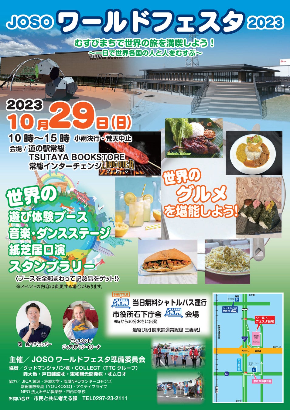 その取り組みの一環で,日本人と外国人の交流や繋がりを目的として,今年オープンした道の駅常総において『JOSOワールドフェスタ2023』を開催することとなりました。