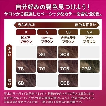 厳選されたベーシックカラー7色に、ウエラトーンでも人気のGMカラー(マットブラウン)が加わることで、ミルキータイプが合計8色での展開となりました。どのカラーを選べば良いのかわからない、自分で染めるのが難しそうという方におすすめです。- 製品概要