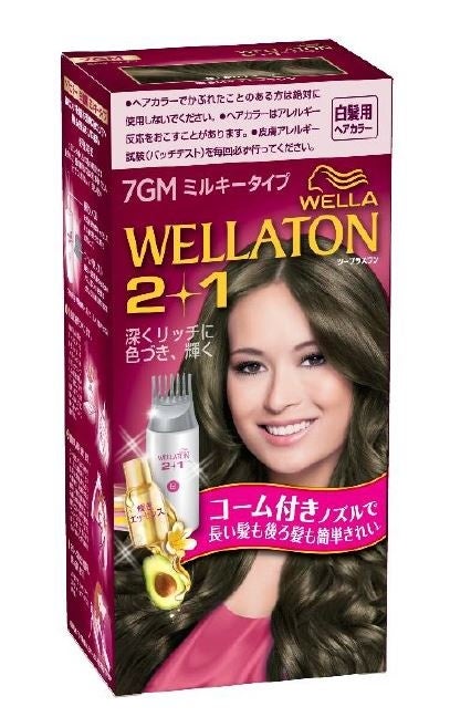 ウエラトーン 2+1 ミルキー EXは、ミルキータイプの染毛剤を、コーム付きノズルで髪をとかすように塗布することができる白髪用ヘアカラーです。コーム付きノズルにより 、髪の長い方でも後ろ髪まで簡単に塗布することができ、 ご自宅での白髪染めが初めての方も、黒髪も白髪問わず簡単に染めることができます。