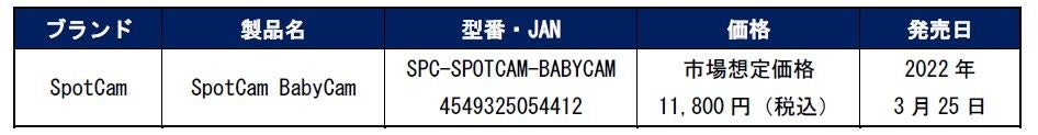 モニタリングカメラ「SpotCam BabyCam」を2022年3月25日(金)に発売いたします。