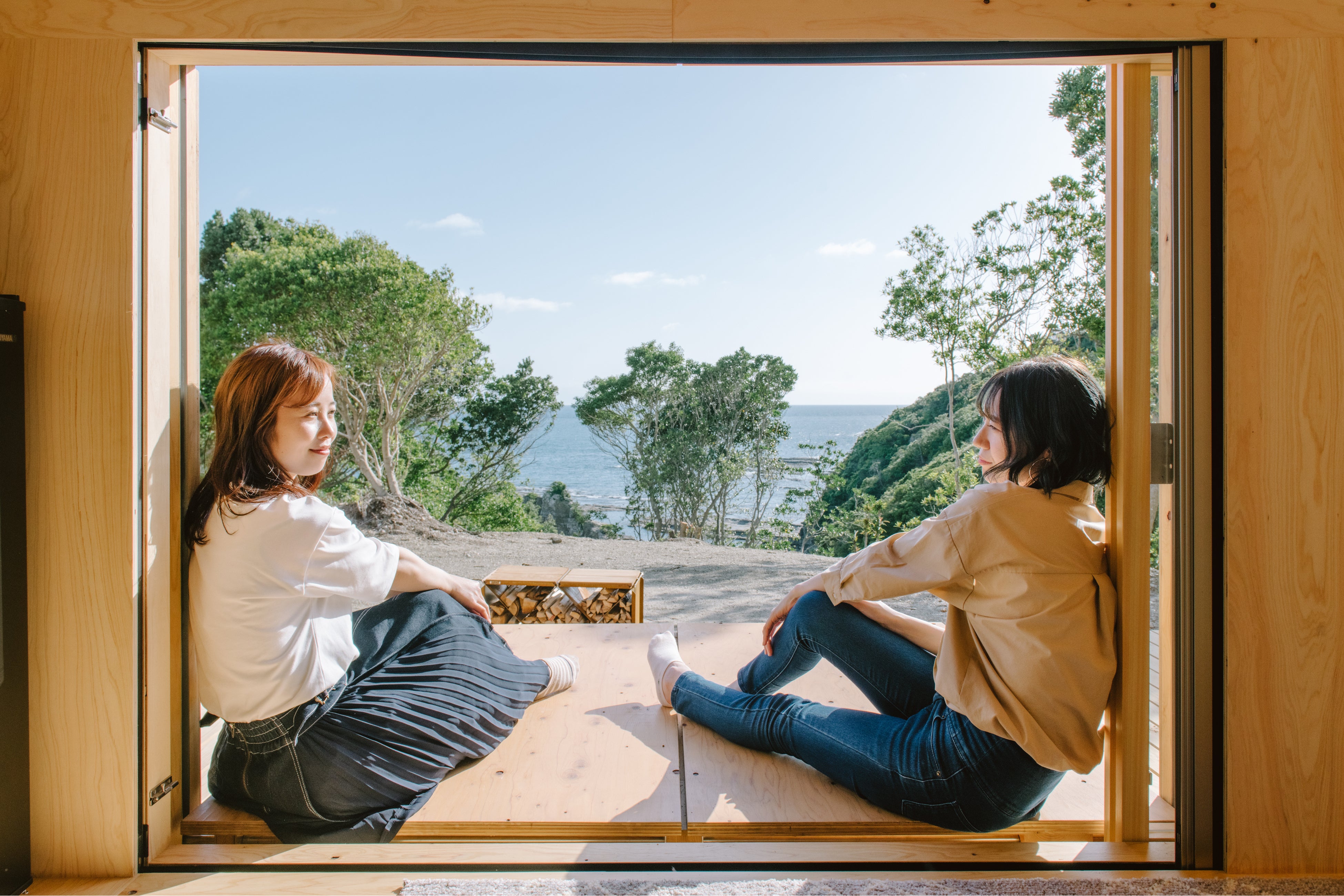 建築家の隈研吾氏とスノーピークが共同で開発した住むを自由にする箱「住箱‐JYUBAKO」。窓からは志原海岸の海、それを囲む森の景色で、自然に圧倒される感覚を味わうことができます。自然を感じて、人間らしさを取り戻すというスノーピークの理念を体現しており、ここ「志原海岸」にしかない景色をお楽しみください。