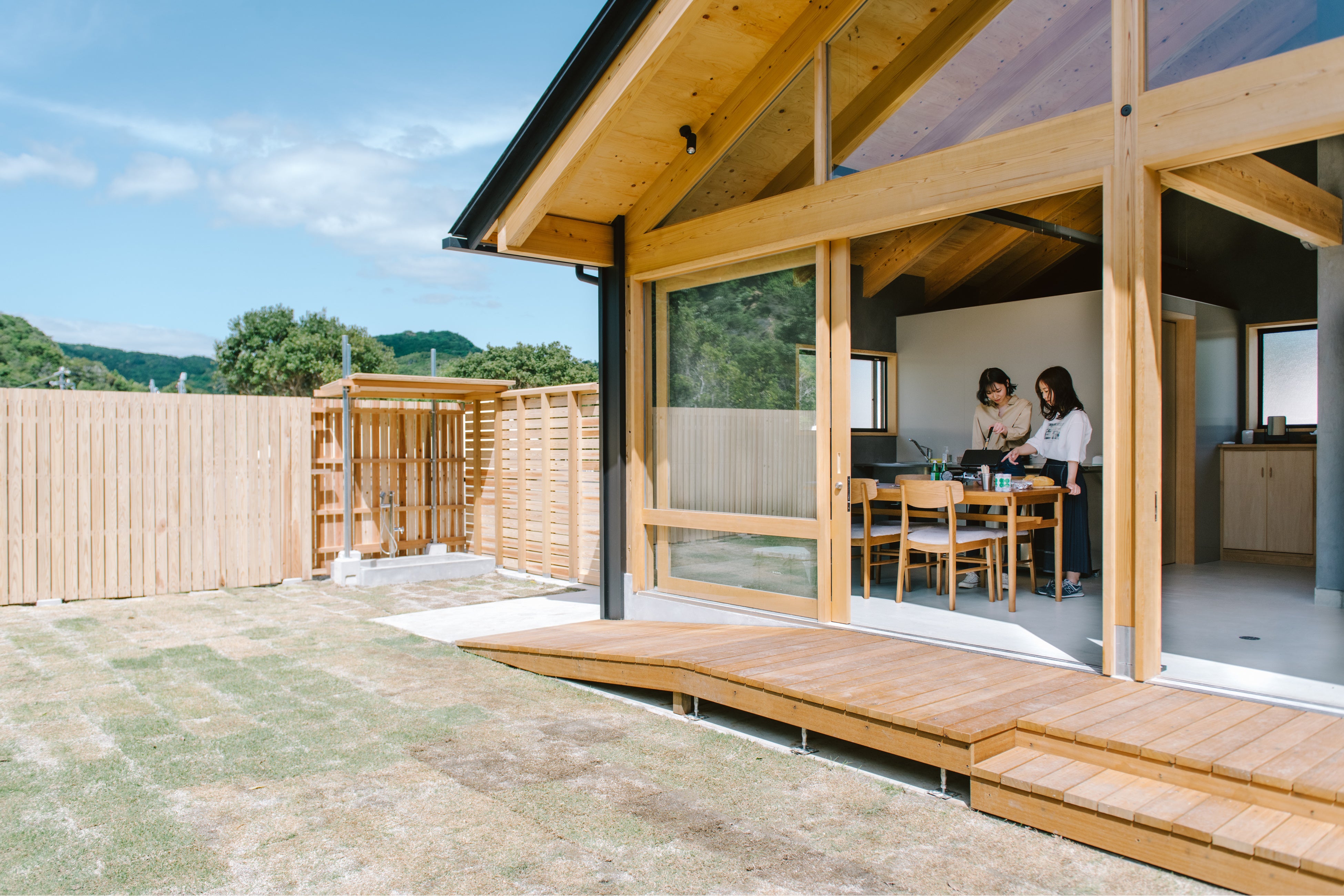 ⑥愛犬と一緒に泊まれるドッグラン付きコテージ。車椅子の方にも対応。