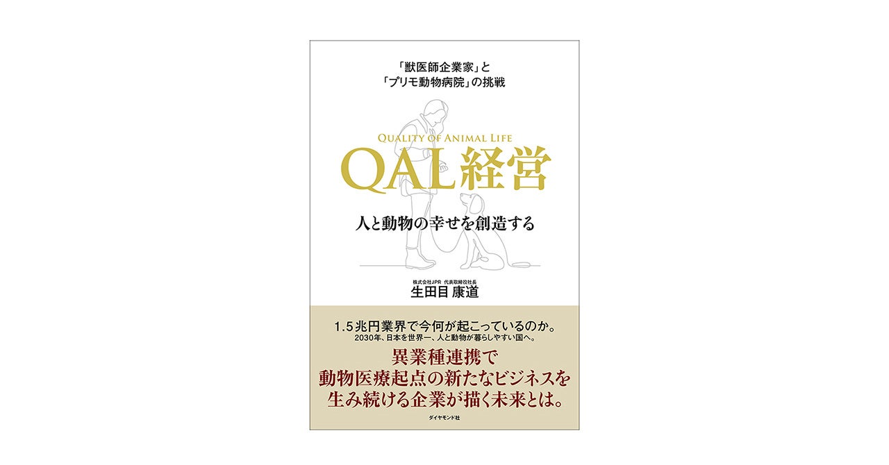 プリモ動物病院グループを運営する株式会社JPRの代表取締役・生田目康道は、書籍『「獣医師企業家」と「プリモ動物病院」の挑戦 QAL経営 -人と動物の幸せを創造する-』を2022年4月20日(水)にダイヤモンド社より発刊します。