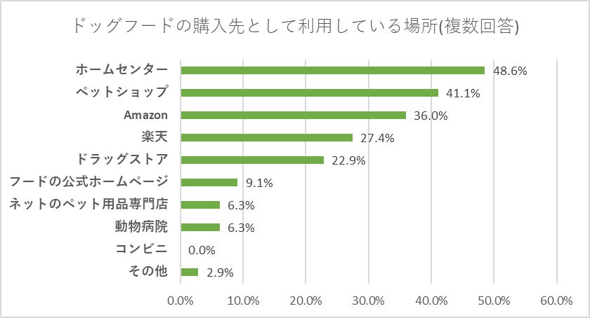 ドッグフードの購入経験がある場所を複数選択で回答いただきました。