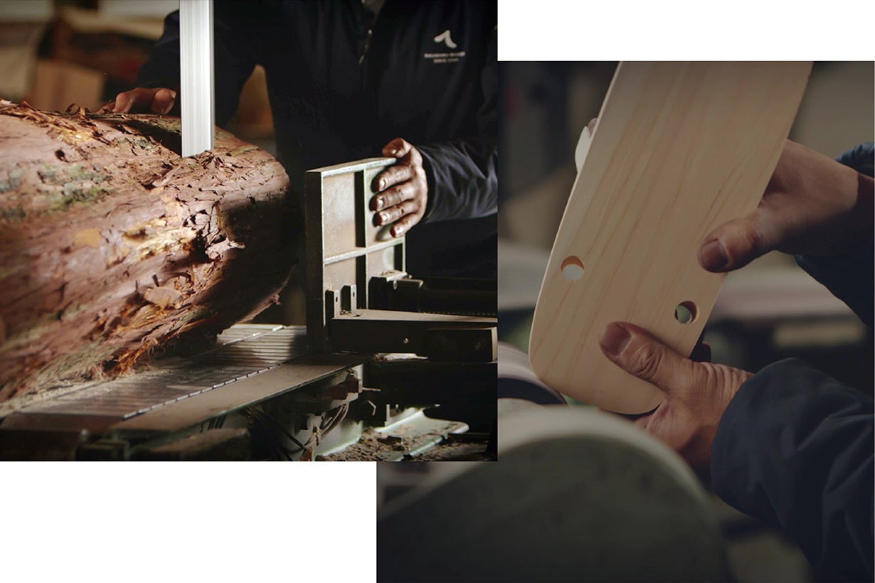 製造元である愛媛県の有限会社長浜木履工場では、間伐された四国産の「ひのき」、「すぎ」などのサステナブルな木材を有効利用することでSDGsの達成に貢献する取り組みを進めており、今回の一本歯下駄-fraing-も同様に間伐材を使用して仕上げられます。
