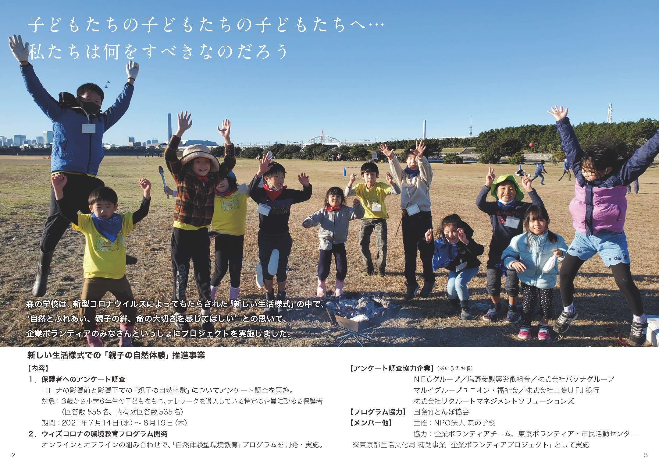 企業7社555名の協力を得て「親子の自然体験」の実態調査を実施。更に結果を参考に全国の親子を対象に「リモートプログラム」を開催。本プロジェクトの報告書が完成しました。