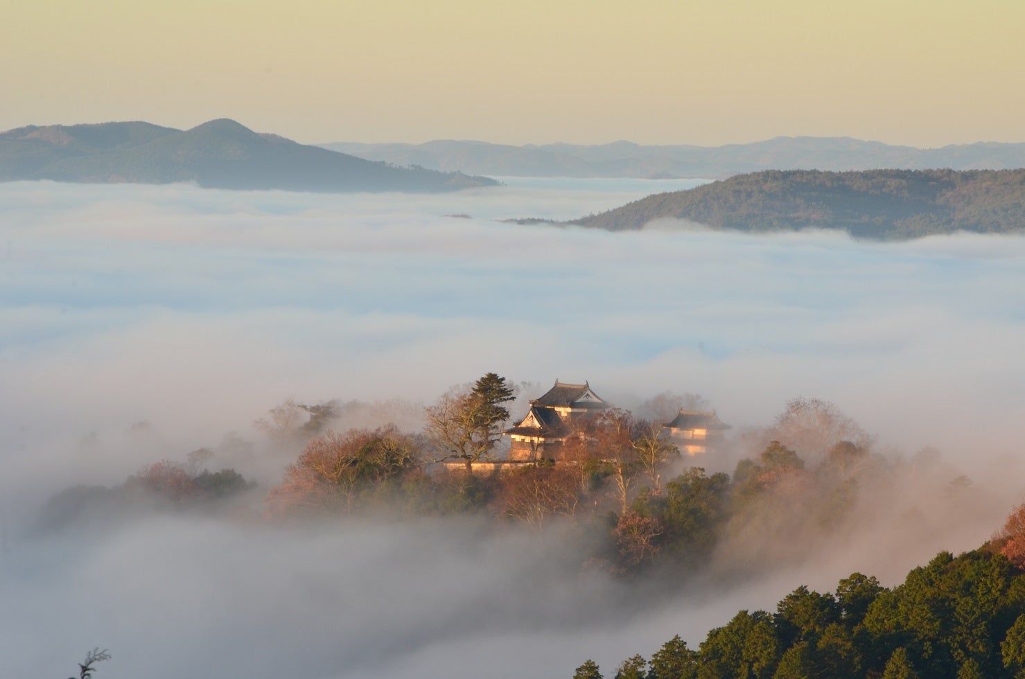 「日本三大山城」と称される備中松山城は、天守の残る唯一の山城で、標高430mの臥牛山に築かれています。標高が高い場所にあることから、気象条件が揃えば、雲海の中に浮かび上がる幻想的な城の風景を見ることができます。