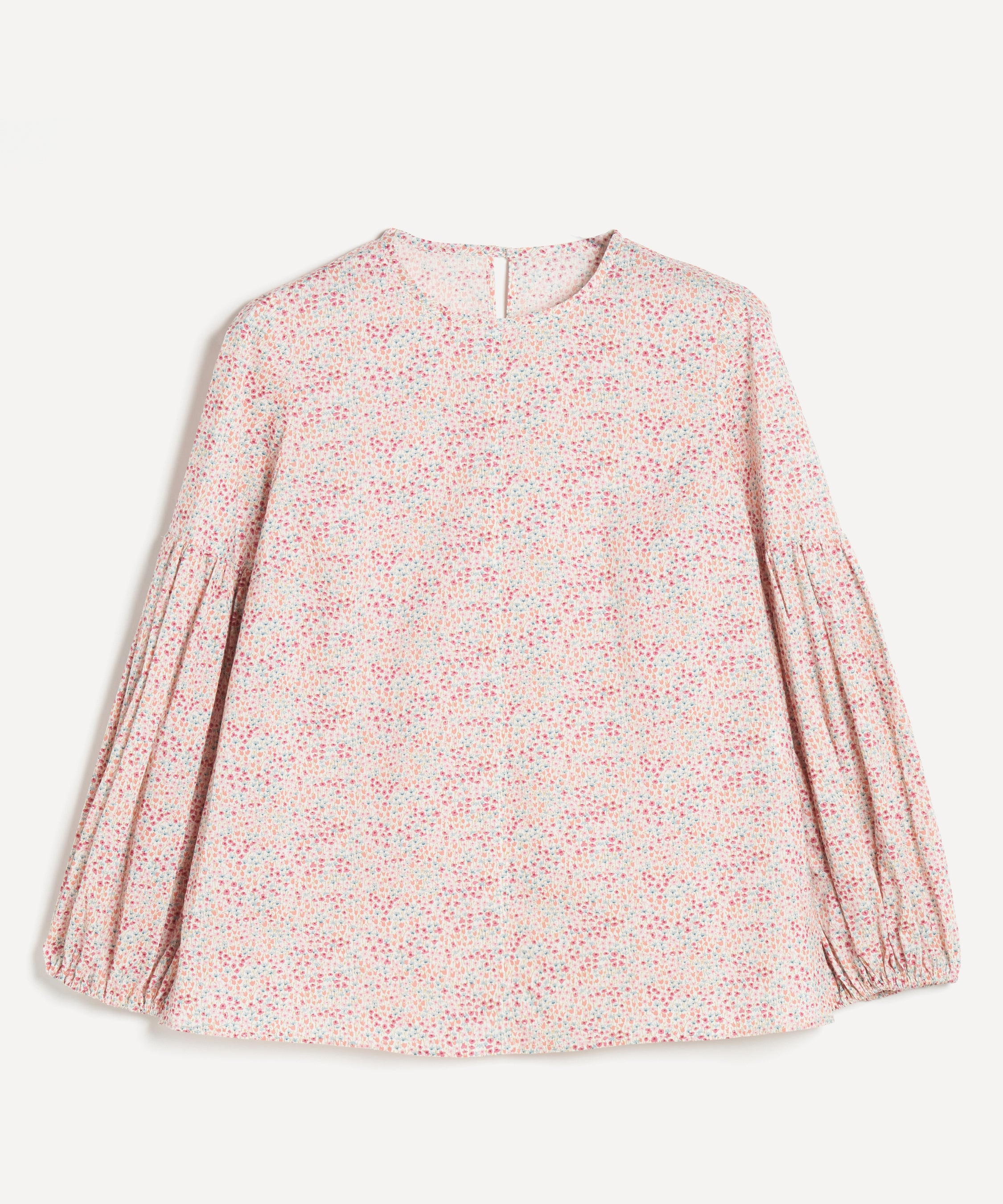 ボリュームスリーブが目を惹くプルオーバーのブラウスです。絶妙な袖の切り替え位置が甘くなりすぎるのを抑え、肩回りを華奢に演出した1枚でも様になるデザインです。